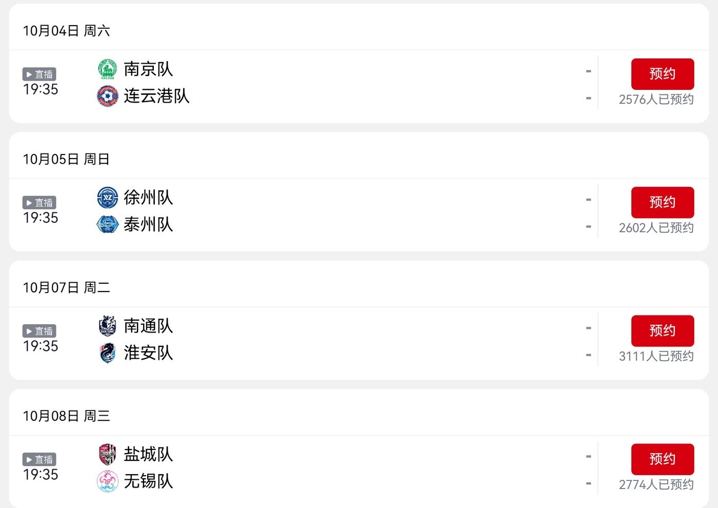 The Scottish Premier League quarterfinals are scheduled for tomorrow (October 4), featuring Nanjing vs. Lianyungang, live on Yangshipin and Migu Video.