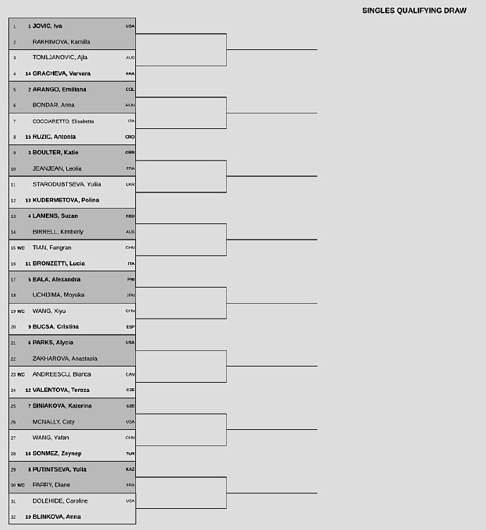 Additionally, the 2025 Wuhan Open women’s singles qualifying draw was released yesterday. Three Chinese players will compete, with their first-round opponents as follows: Tian Fangran vs. Bronzeti; Wang Xiyu vs. Buksa; Wang Yafan vs. Mermet.