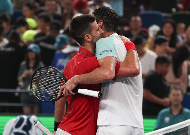 Back to the courts. From afternoon to evening Beijing time yesterday, the ATP1000 Shanghai Masters held its singles second round matches. In a highlight match, 38-year-old Serbian star Novak Djokovic defeated 37-year-old Croatian veteran Marin Cilic 7-6(2), 6-4, winning the Masters match featuring the highest combined age of players. Next, he will face German qualifier Hanfmann, who came back from a 6-7(9) 6-2 6-1 victory over the 25th seed Thiago Monteiro.