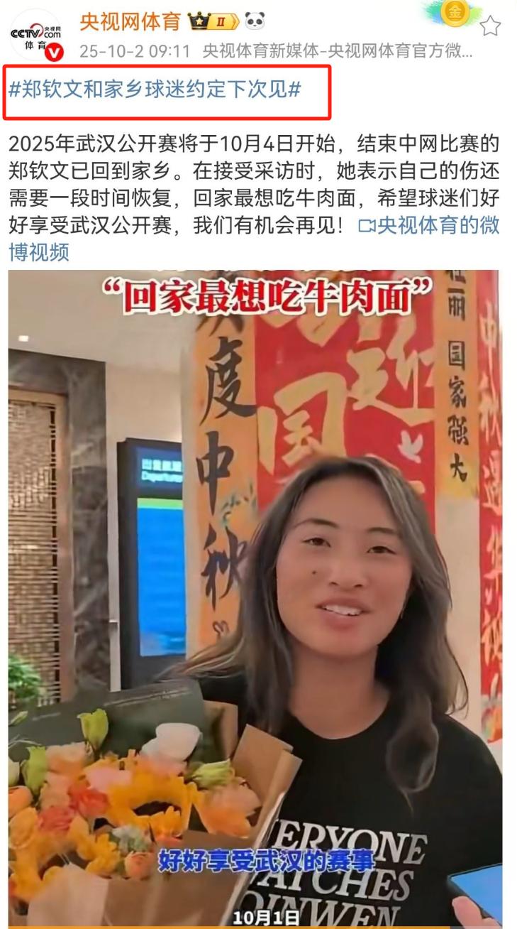 Moreover, shortly after Zheng returned to Wuhan, CCTV Sports’ official website reported the news, already revealing her withdrawal from the Wuhan Open with the headline “Zheng Qinwen promises hometown fans to meet next time,” which was a clear sign.