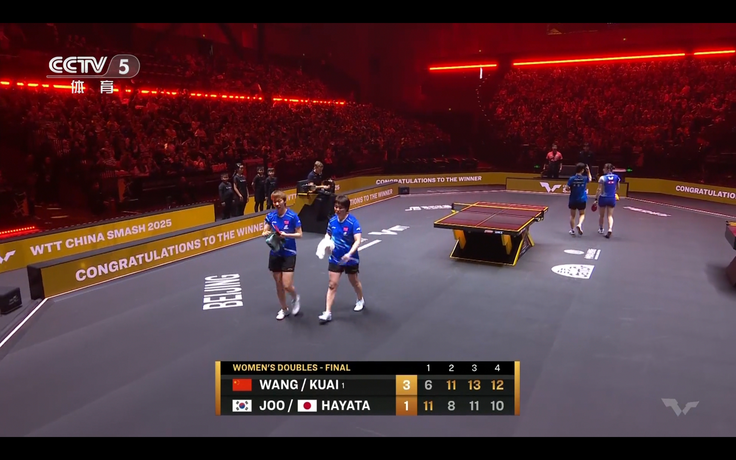 The opening match was the women’s doubles final, with Kuai Man and Wang Manyu defeating Hayata Hina and Zhu Qianxi 3-1. Kuai Man and Wang Manyu performed exceptionally well, showing excellent teamwork, truly deserving their status as the world’s top-ranked women’s doubles pair. Naturally, their opponents also played impressively, reaching the final in their first partnership and delivering a strong performance.