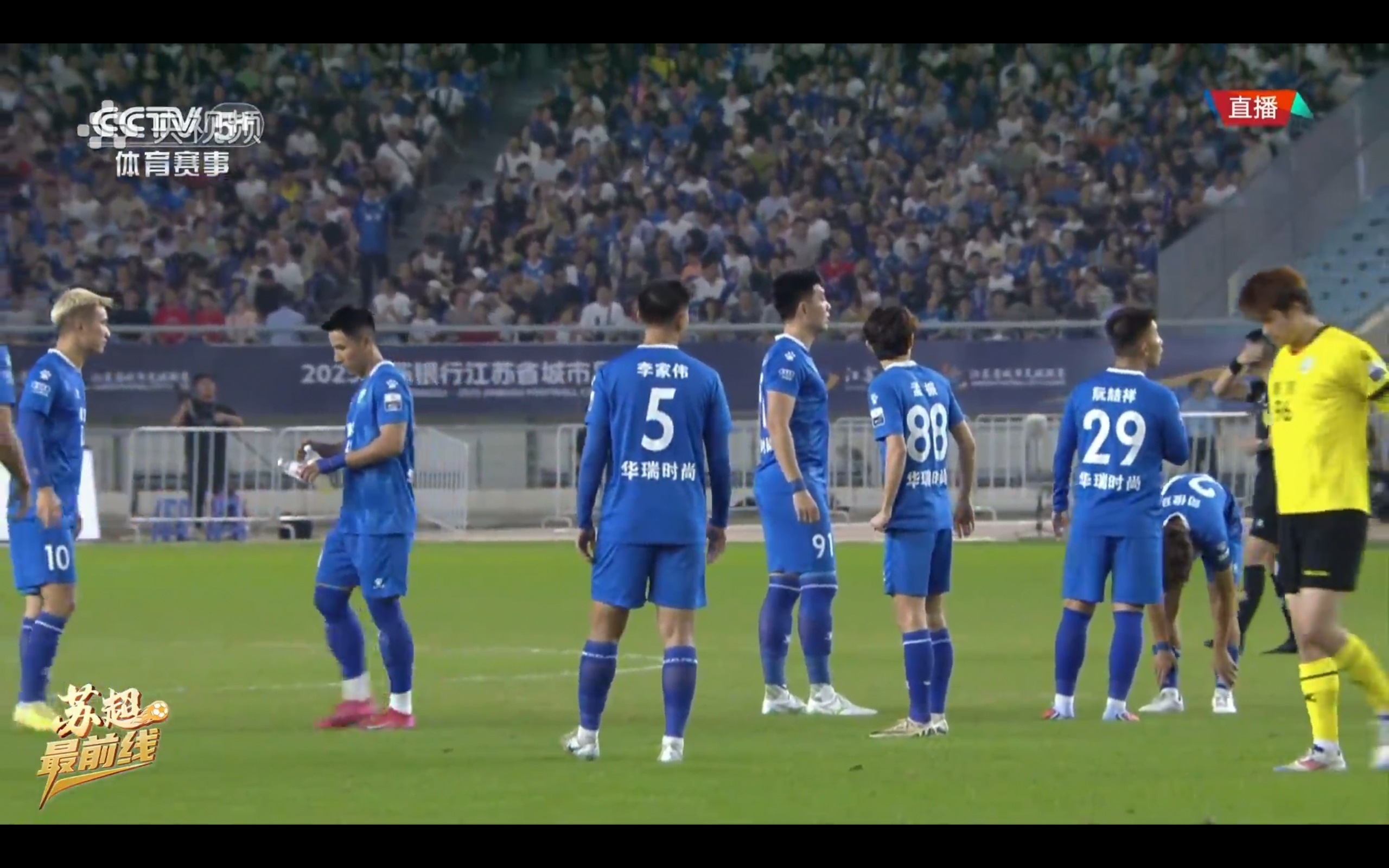 The Suzhou Super League knockout match between Nanjing team and Lianyungang team is being broadcast live on CCTV-5+ channel.