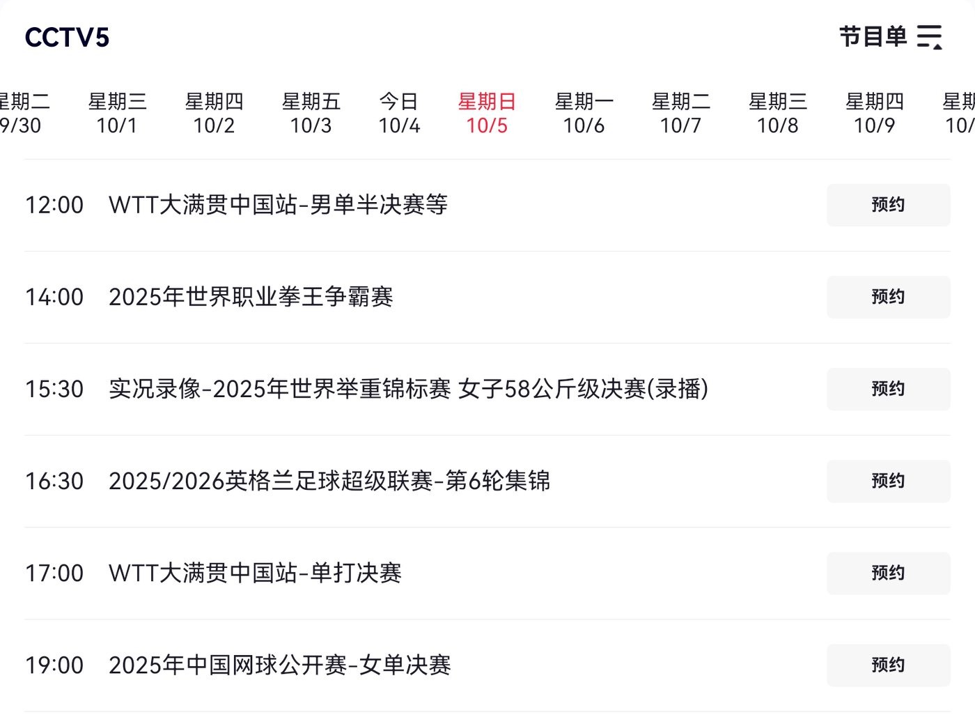 The live broadcast plan for CCTV-5 is confirmed; details are shown in the image below.