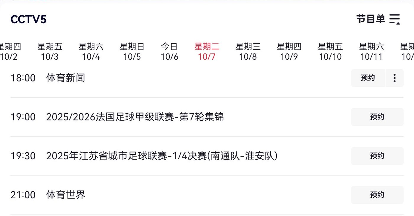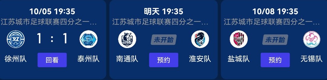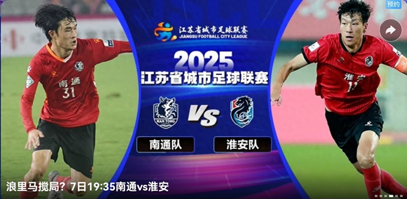 The Suzhou Super League quarterfinal tomorrow (2025.10.7) features Nantong vs. Huai'an, live on CCTV-5.