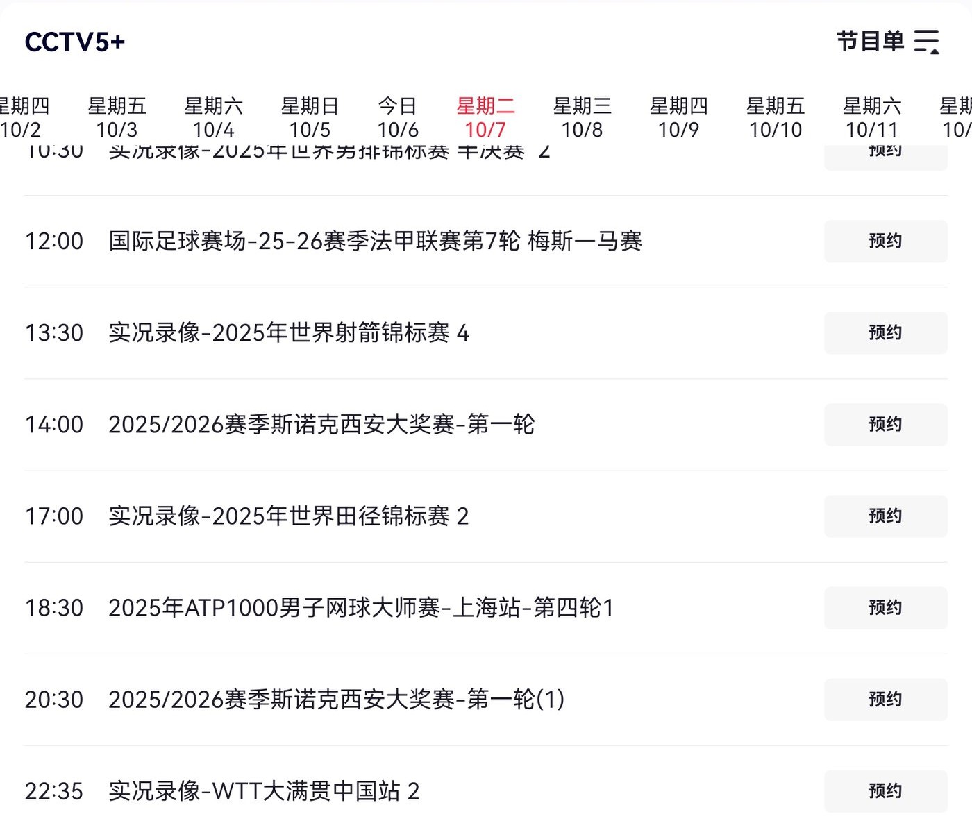 The CCTV-5+ broadcast schedule is shown in the image below; Huya will provide full free live streaming.