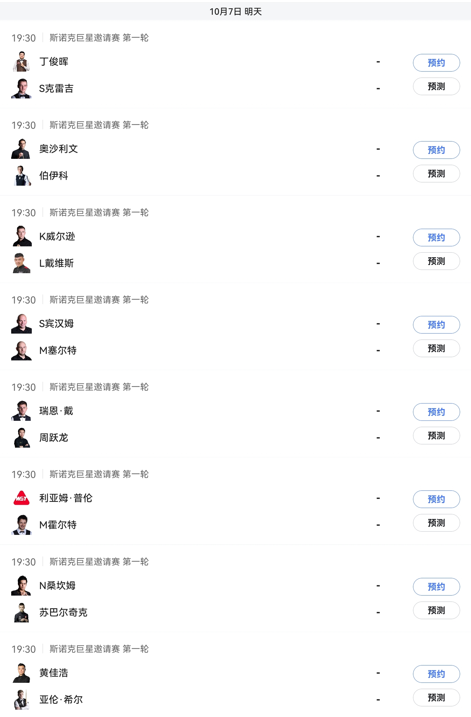 5. Tomorrow evening at 7:30 PM,Ding Junhui vs. Craigie, Zhou Yuelong vs. Ryan Day, Huang Jiahao vs. Hill.Also,O'Sullivan, Bingham, and Wilson will compete in the 7:30 PM session.