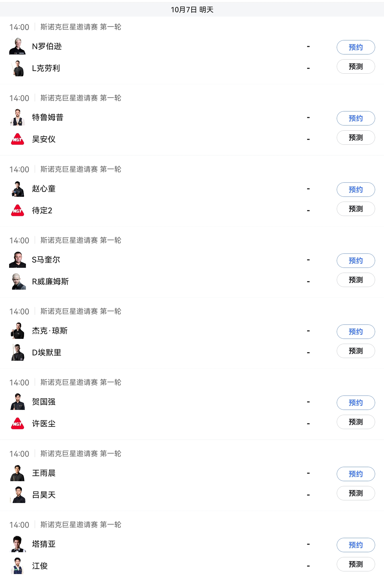 3. Tomorrow at 2 PM,Zhao Xintong vs. TBD, He Guoqiang vs. Xu Yichen, Wang Yuchen vs. Lv Haotian, Jiang Jun vs. Tatchaiya.Additionally,Robertson, Trump, and Jack Jones will also play in the 2 PM session.