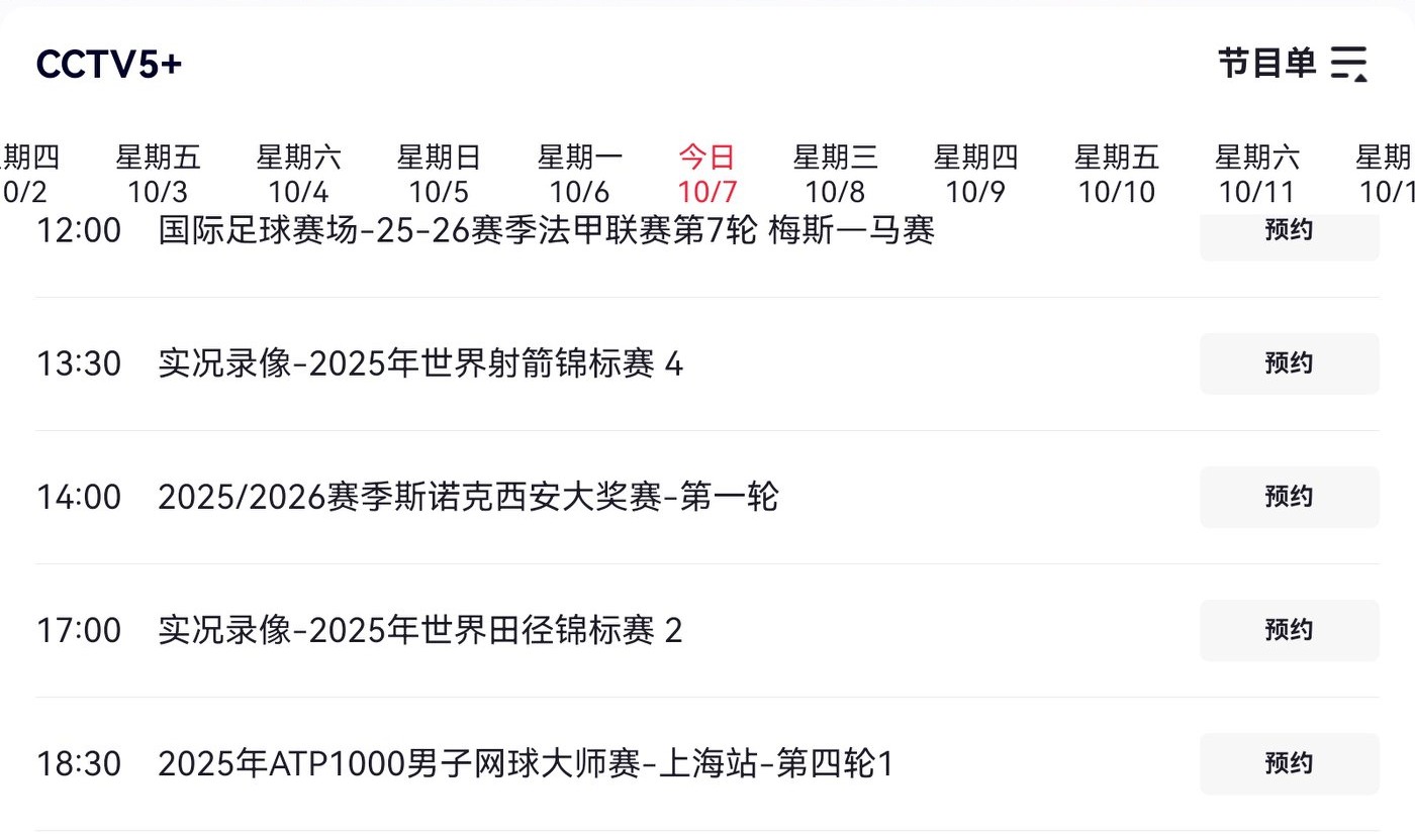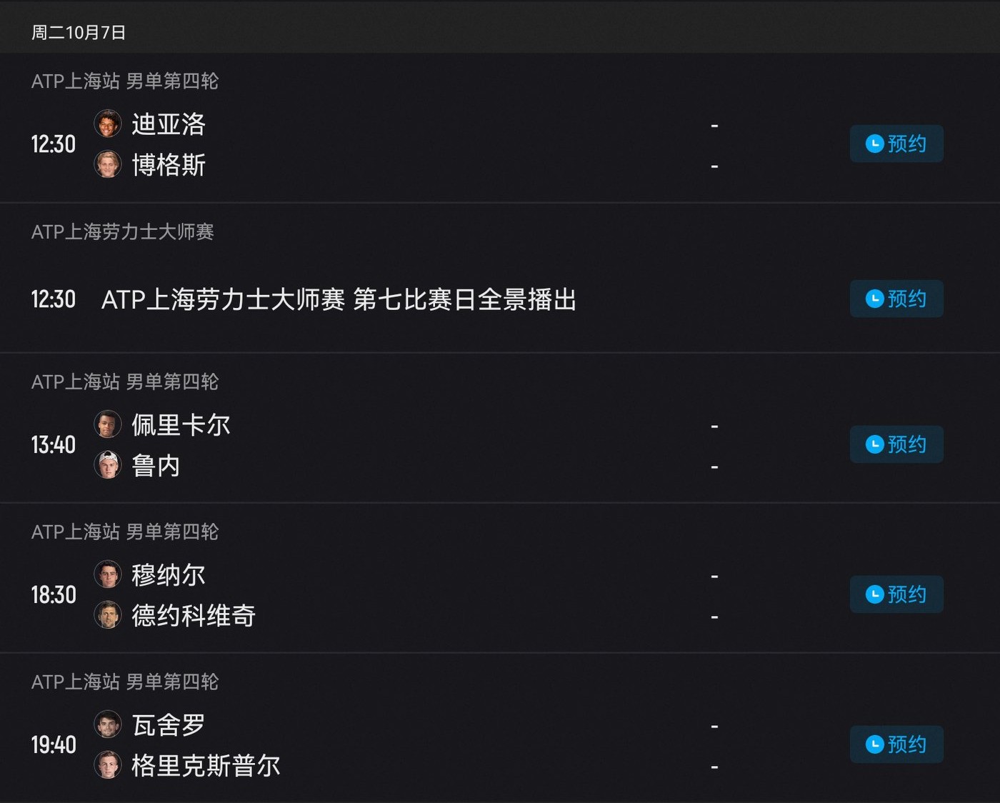 Today's schedule for the Shanghai Masters (2025.10.7) features Djokovic, Rune, and others, with broadcasts on CCTV-5 and Youku.