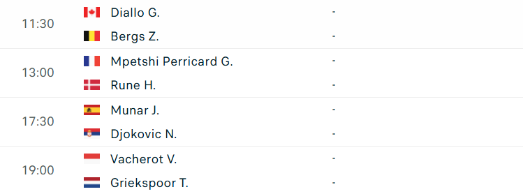(Today's tennis schedule) - The early departures of Jannik Sinner and Alexander Zverev have opened the door for Novak Djokovic to aim for his fifth championship at the Shanghai Masters.