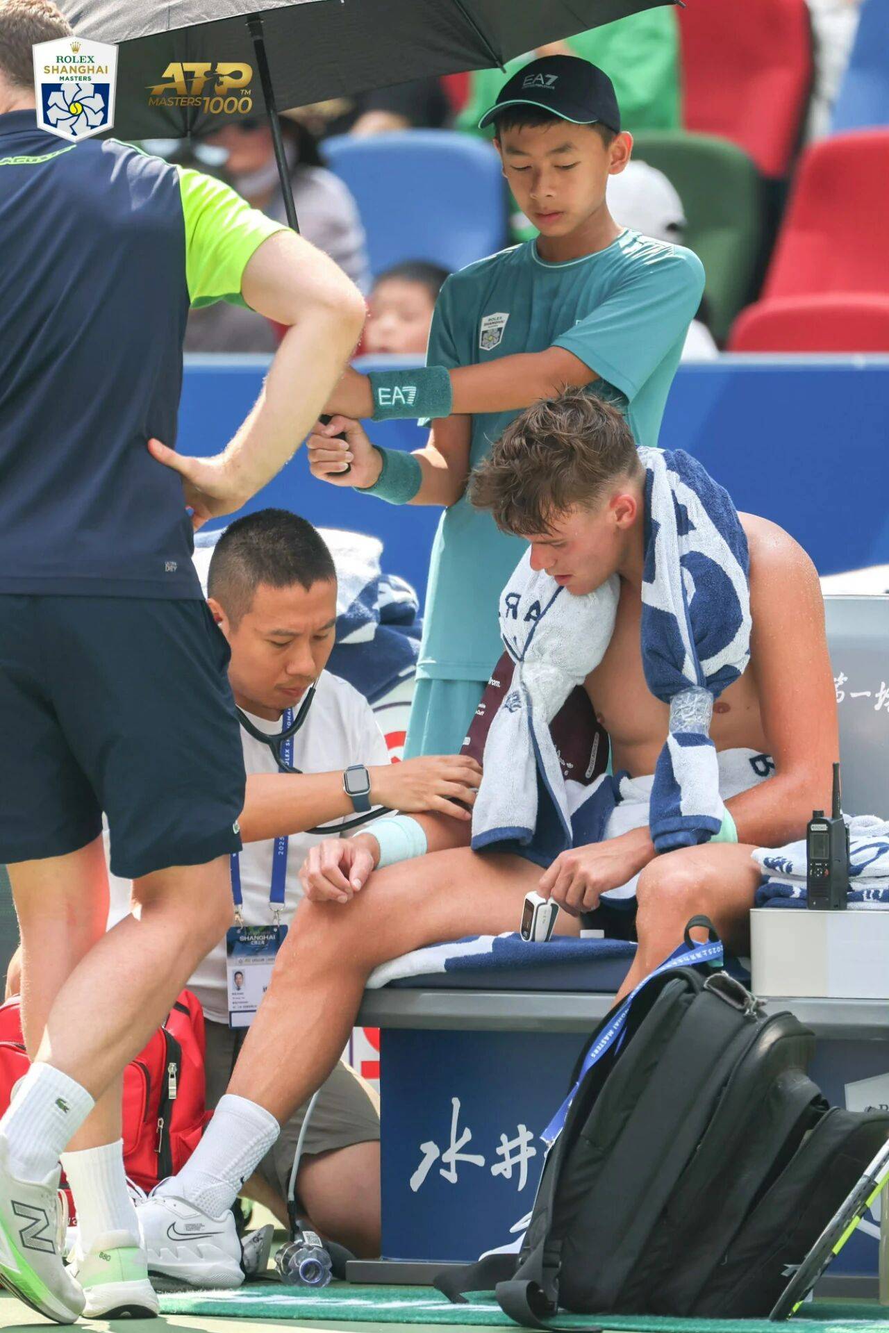 When Rune suffered from heatstroke halfway through the first set, many believed Humbert’s chance had arrived. Broadcast footage showed medical staff checking Rune’s blood pressure, and the Dane was sitting shirtless at the court side rehydrating, appearing extremely exhausted and seemingly close to withdrawing.