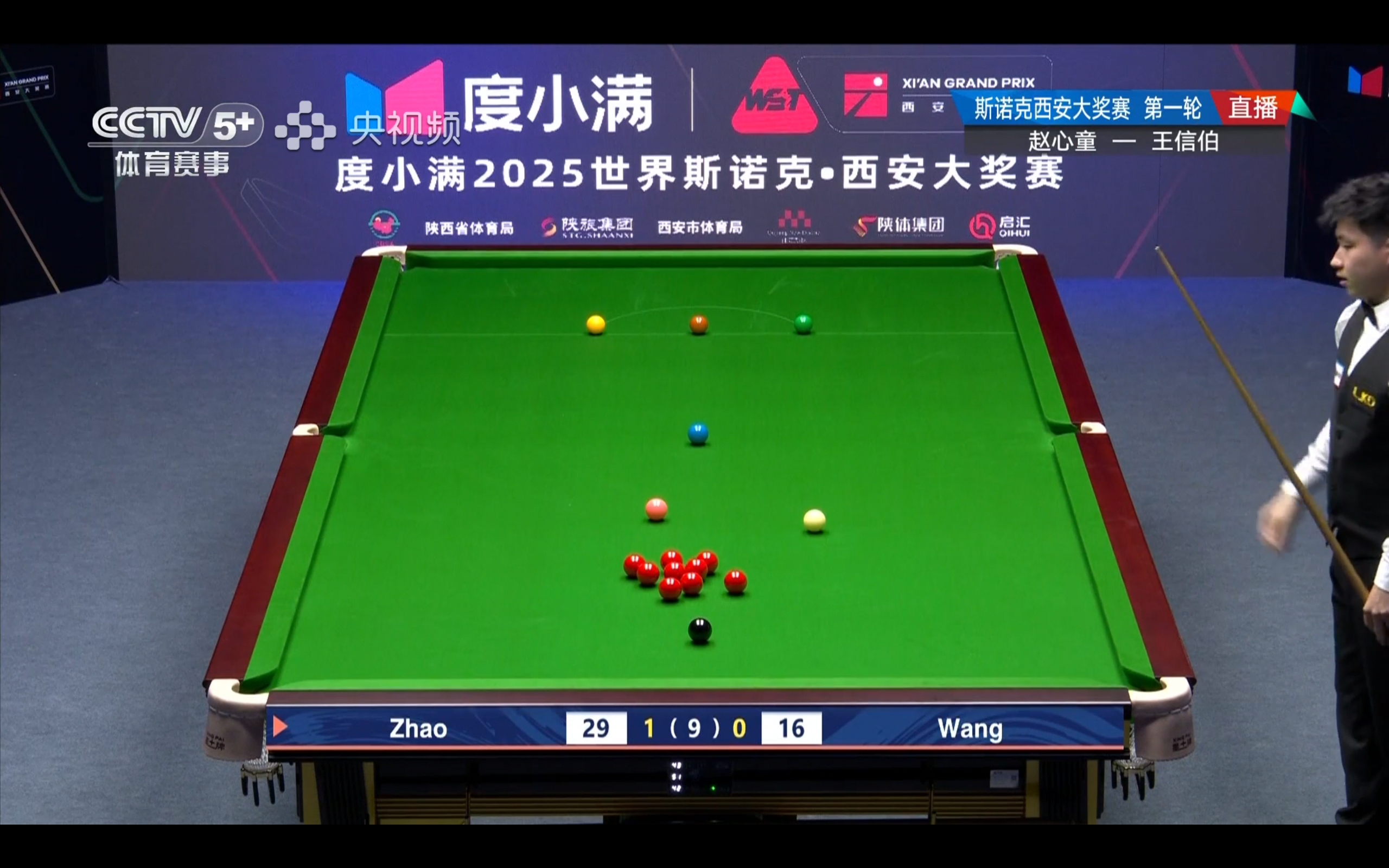 The Snooker Xi'an Masters match featuring Zhao Xintong versus Wang Xinbo is live on CCTV-5+ and Yangshipin.
