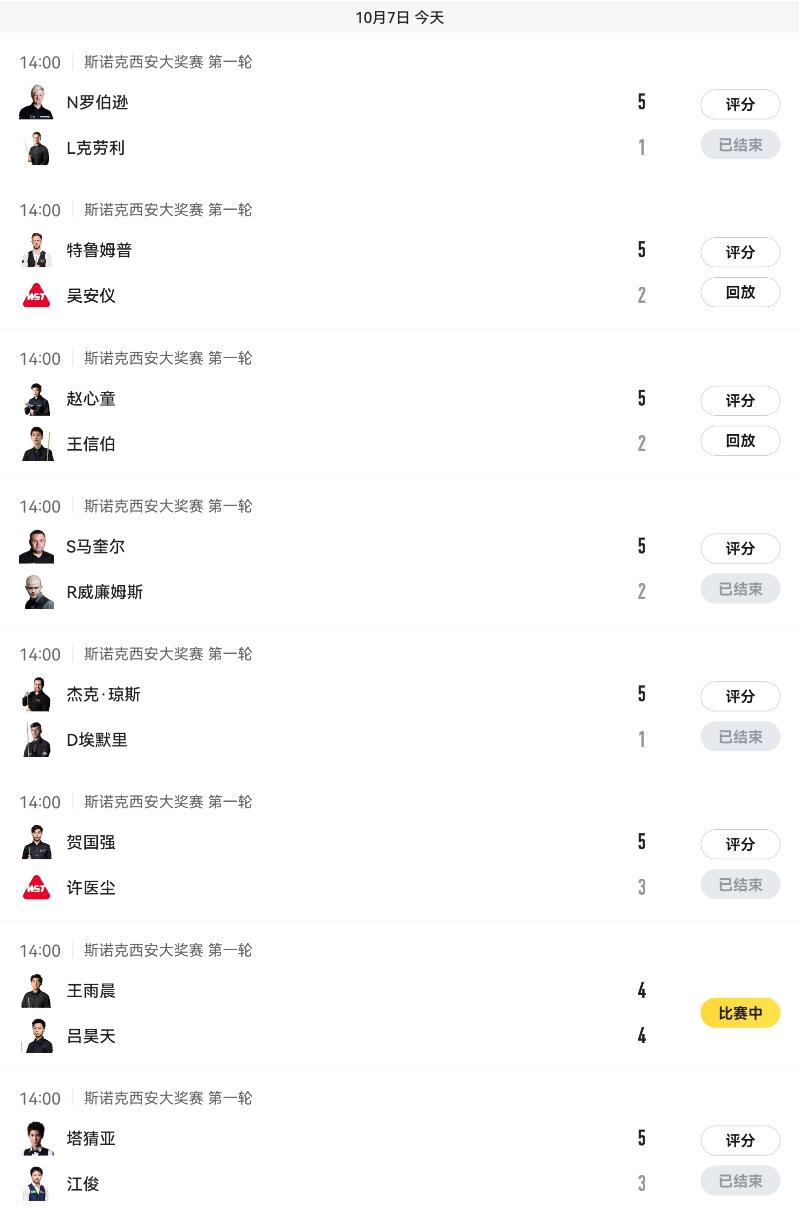In the 2 PM matches today, the national players performed as expected. Zhao Xintong did not fully demonstrate the skills typical of a world champion; his opponent was simply too weak. Wang Xinbo, He Guoqiang, and Wang Yuchen faced internal matches, so their losses are understandable. Jiang Jun and Wu Anyi were simply outplayed and had no chance.