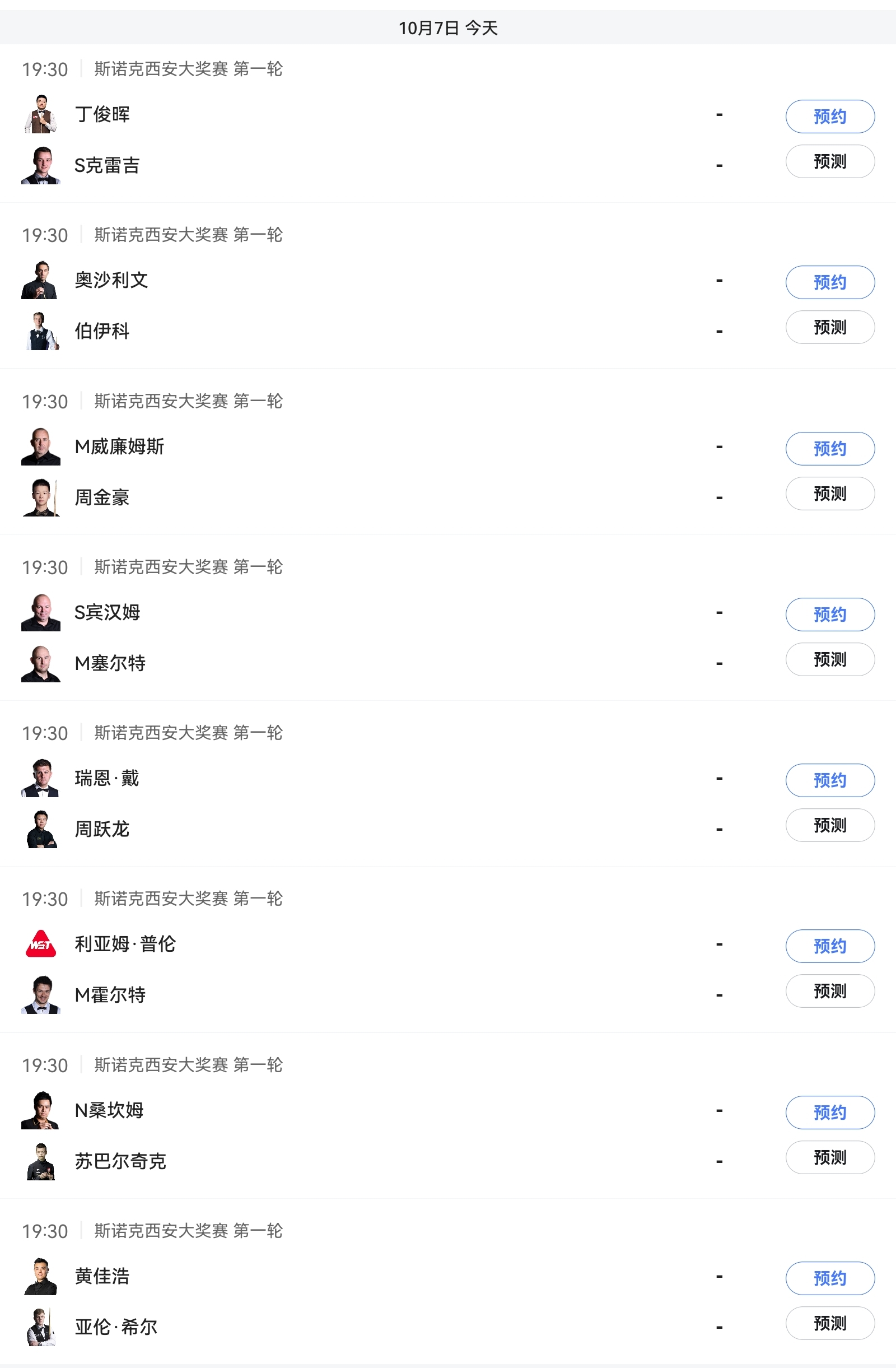 At 7:30 PM tonight,domestic players Ding Junhui, Zhou Jinhao, Zhou Yuelong, and Huang Jiahao will compete.
