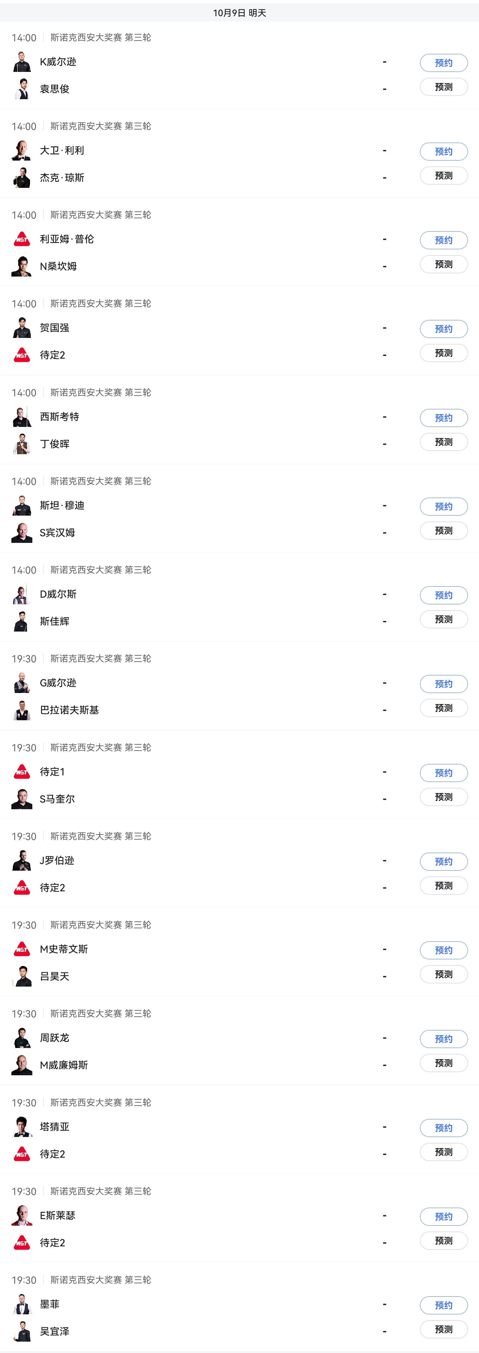 The Snooker Xi'an Open schedule for tomorrow (10.9): Ding Junhui, Si Jiahui, and others will compete; CCTV-5 will broadcast live.