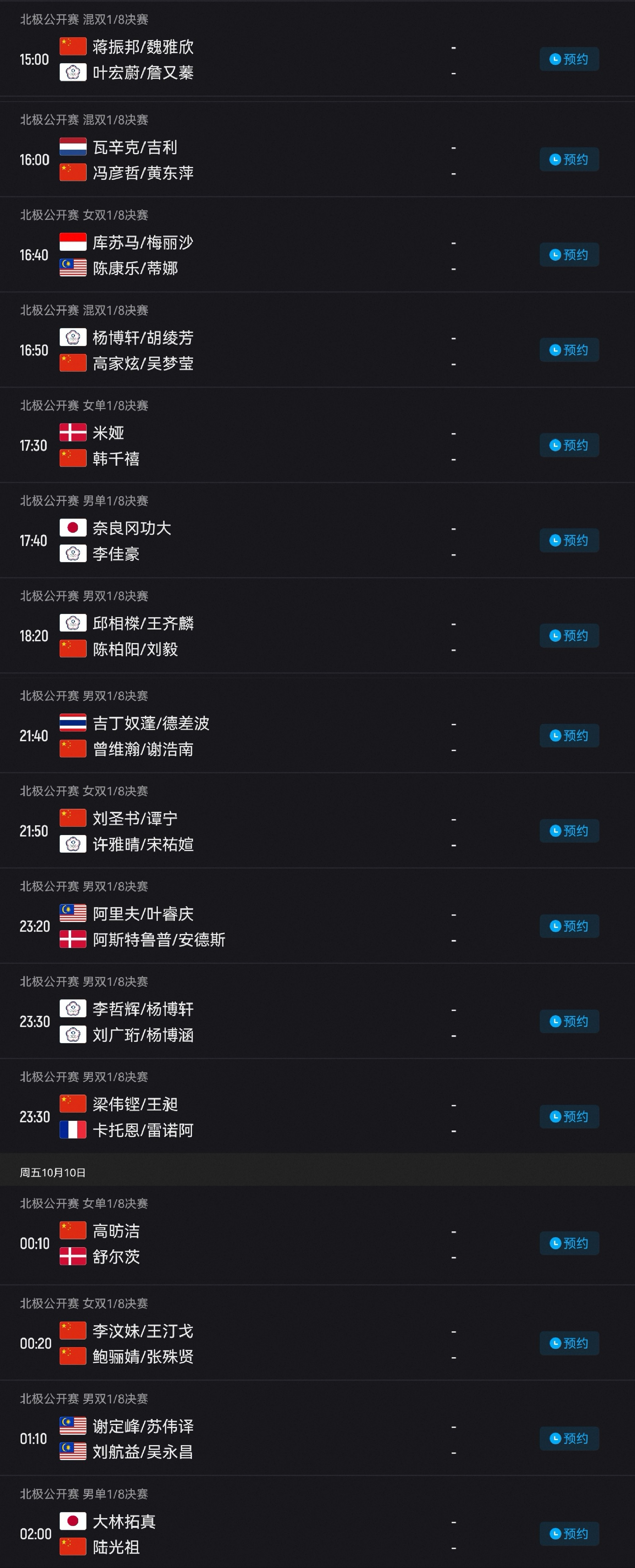 The Badminton Arctic Open schedule for today (2025.10.9) features 11 matches for the Chinese team, streamed on CCTV Video and Youku.