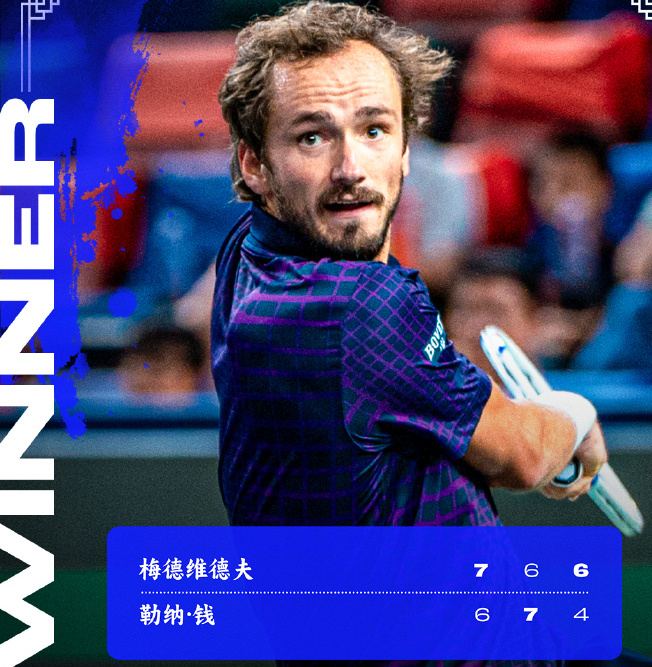Last night Beijing time, the ATP1000 Shanghai Masters wrapped up the fourth round in the men's singles upper half, finalizing the quarterfinalists. In the highlight night match, former champion and Russian star Medvedev overcame a cramp near the end of the second set, battling for 2 hours and 52 minutes to narrowly defeat American youngster Learner-Chien 7-6(6), 6-7(1), 6-4, securing his first win against him in three encounters this year. In the quarterfinals, Medvedev will face the 7th seed, Australian young gun Deminal, who defeated Portuguese player Borges 7-5, 6-2.