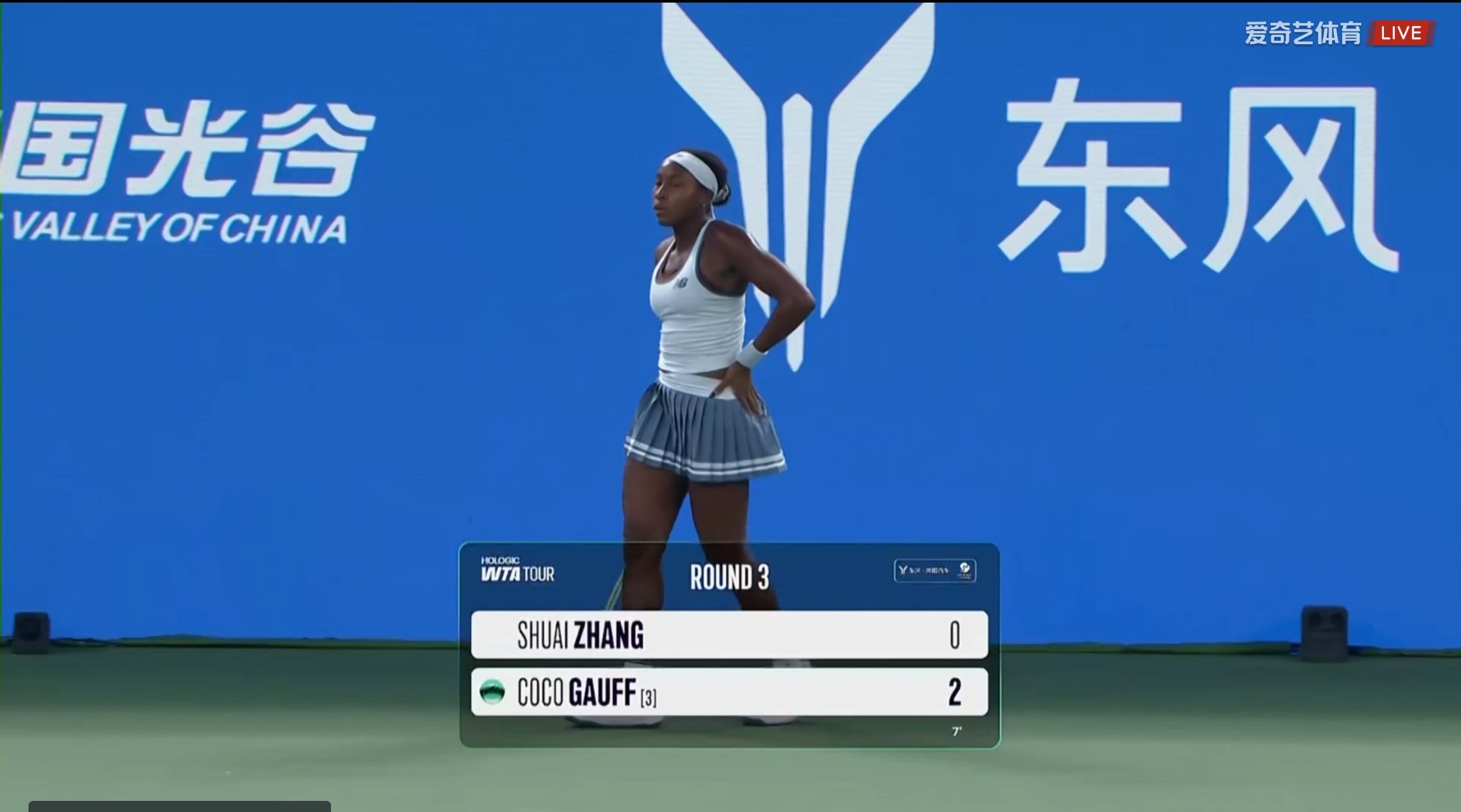 iQIYI Sports Channel is live streaming the Wuhan Open match between Zhang Shuai and Gauff.