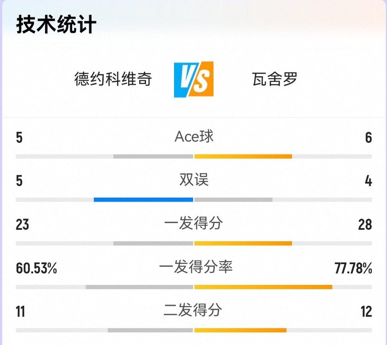 Vacherot really pulled off a surprise by defeating Djokovic and making his debut in an ATP 1000 final. Djokovic, though aging, still performed admirably. However, he did not win the title this time and may find it difficult to claim future championships due to his age. According to the match stats, Djokovic’s first serve points won and first serve percentage were both lower than his opponent’s, and he committed more double faults. Overall, his stats lagged behind Vacherot’s, so the loss was understandable.