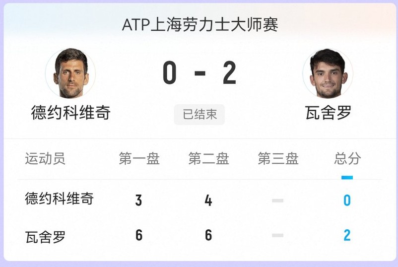 Shanghai Masters Update: In the recently finished semifinal, Djokovic lost 0-2 to Vacherot and missed the chance to advance to the semifinals.