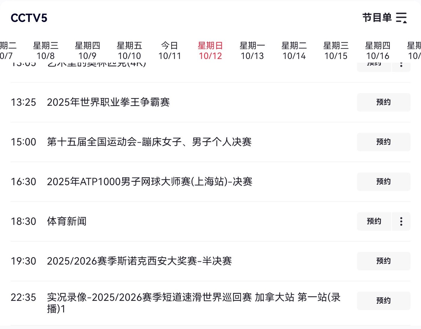 The live broadcast schedule for CCTV-5 and Huya is shown in the image below.