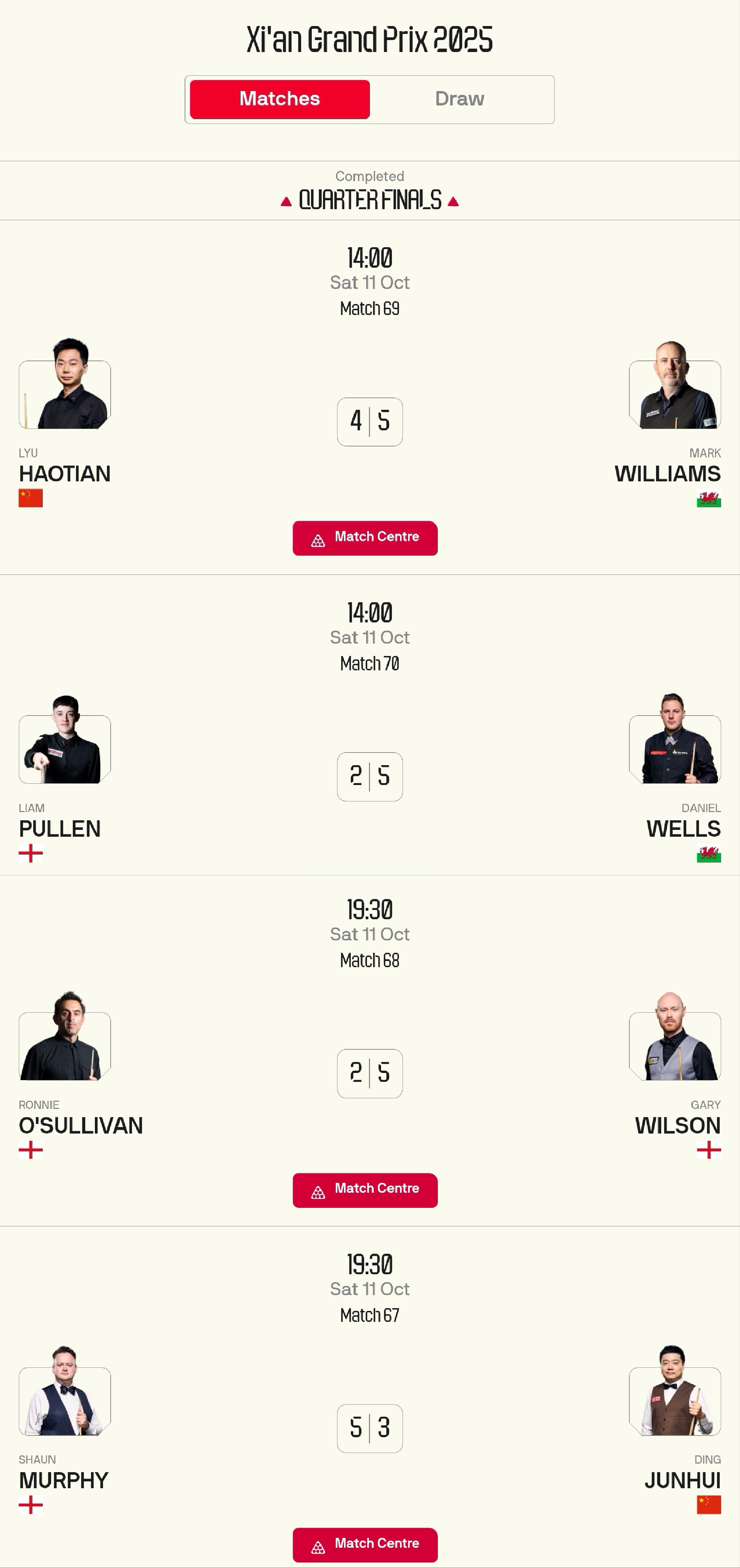 Latest update from the Snooker Xi'an Open: Both Ding Junhui and Lu Haotian lost, with no Chinese players advancing to the semifinals.