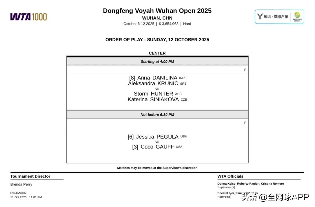 On October 11th, the 2025 Wuhan Open wrapped up its semifinal day with 6th seed Pegula edging out top seed Sabalenka, and 3rd seed Gauff defeating 7th seed Paolini in two sets, resulting in an all-American final in the women’s singles event.