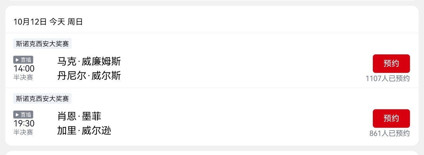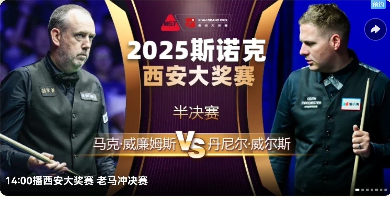 The Snooker Xi'an Masters semifinals are happening today (2025.10.12), with Murphy, Wilson, Williams, and Wells competing, broadcast live on CCTV-5 and CCTV video app.
