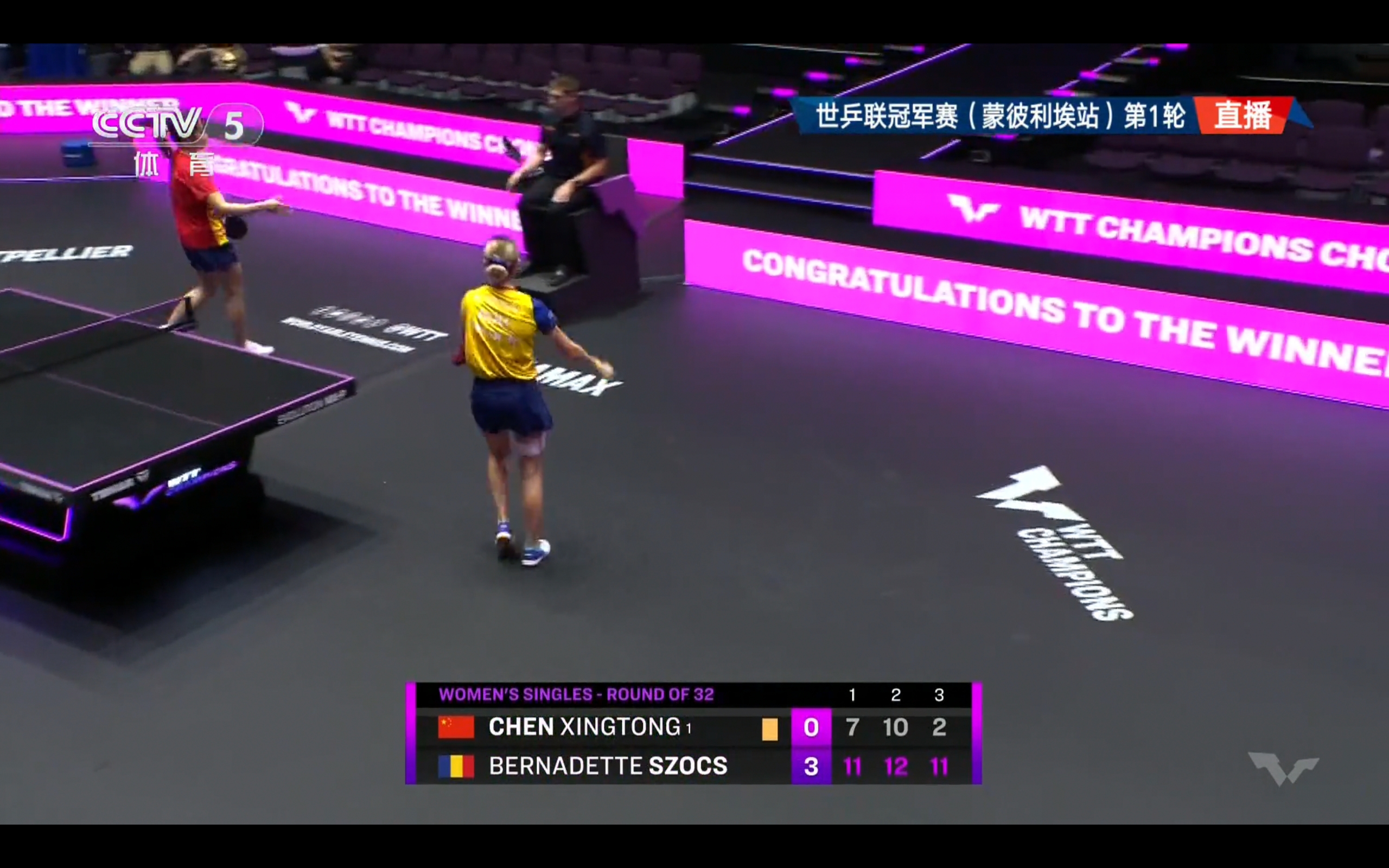 A major surprise! At the just-finished WTT Champions Montpellier tournament, Chen Xingtong was shut out 0-3 by Szocs and knocked out in the first round.