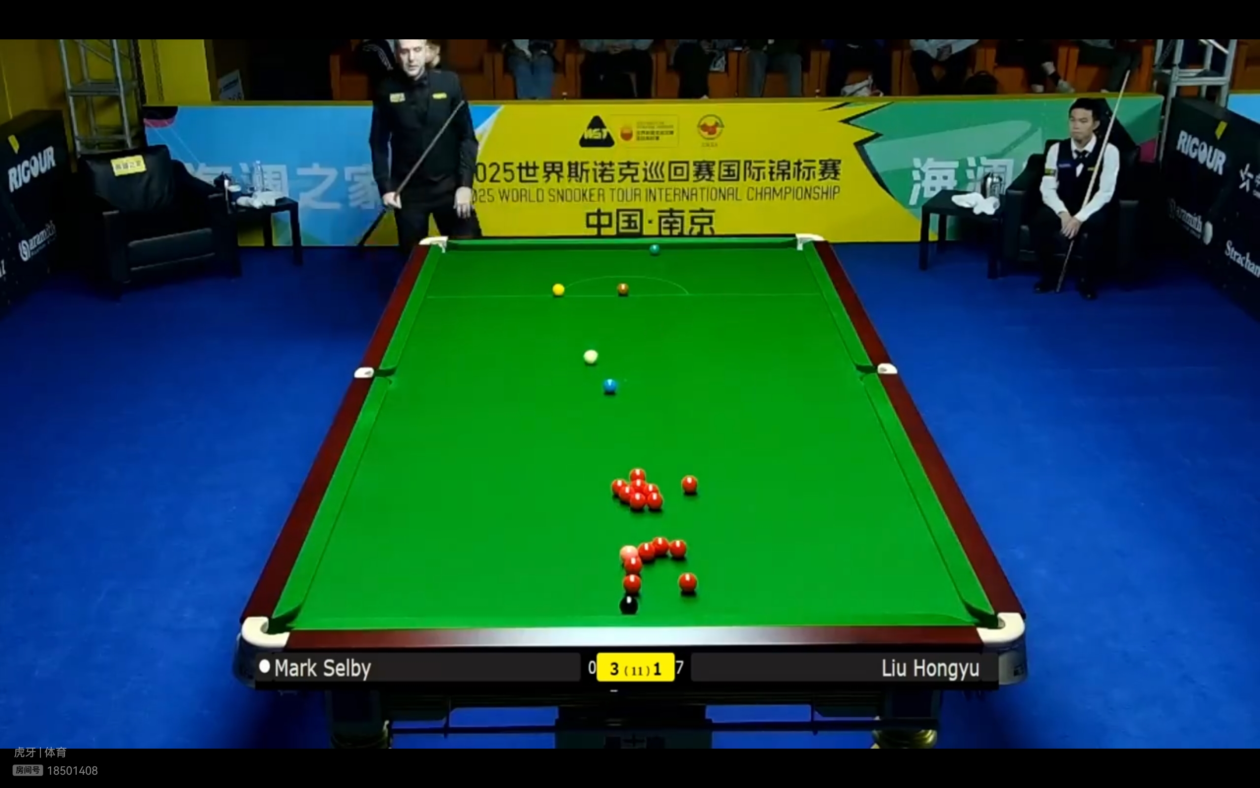 In the best-of-11-frames match, Liu Hongyu is currently down 1-3 against Selby. It is very probable that Liu Hongyu will lose and be knocked out.