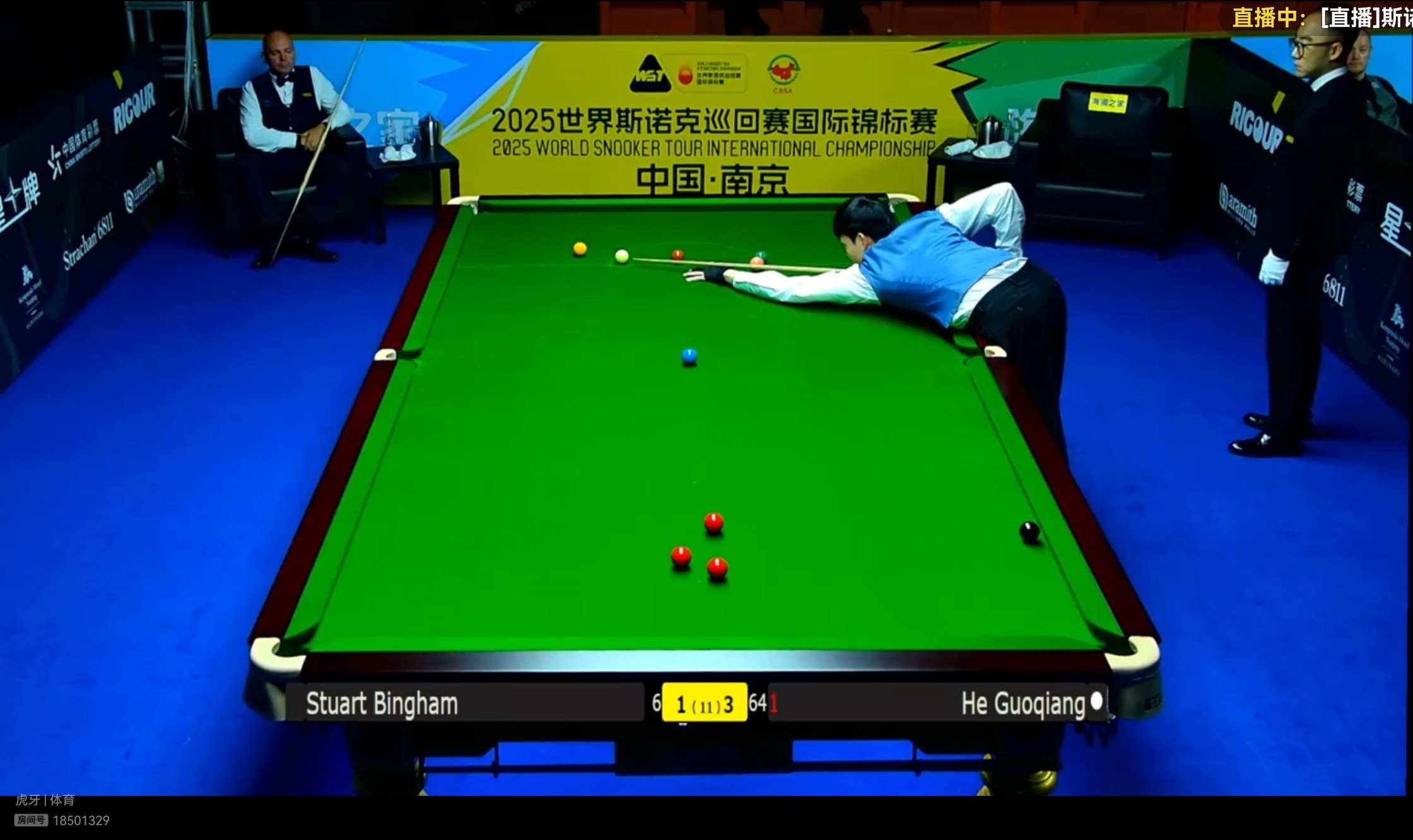 In the best-of-11-frames match, He Guoqiang leads Bingham 3-1. Could He Guoqiang cause an upset and defeat Bingham to reach the next round?
