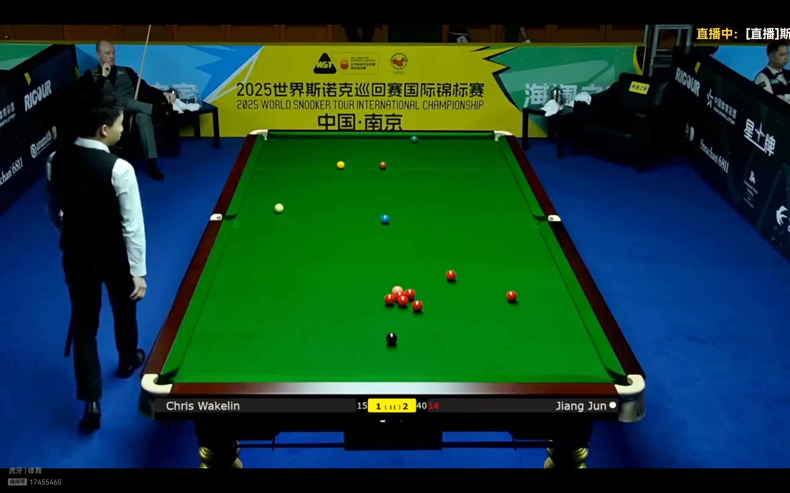 In the best-of-11-frames match, Jiang Jun holds a 2-1 lead over Wakelin. However, it is probable that Wakelin will come back to win and advance to the next stage.