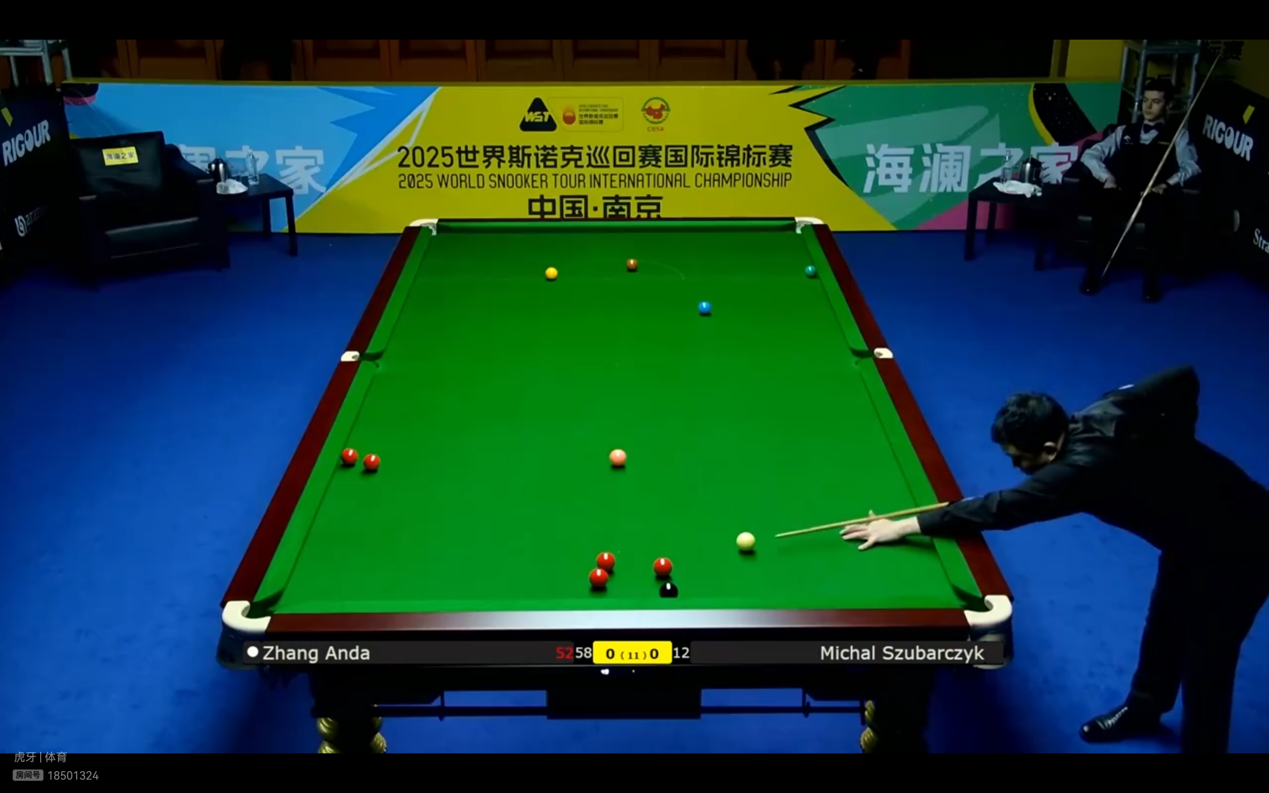 Zhang Anda is leading 58-12 in points during the first frame against his opponent.