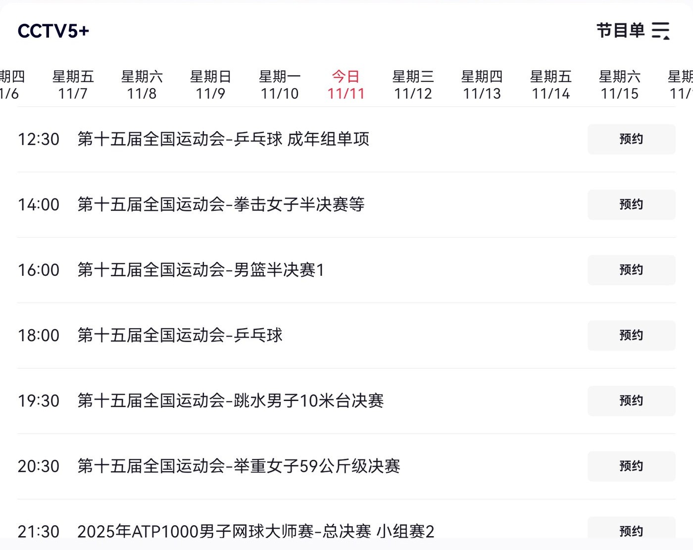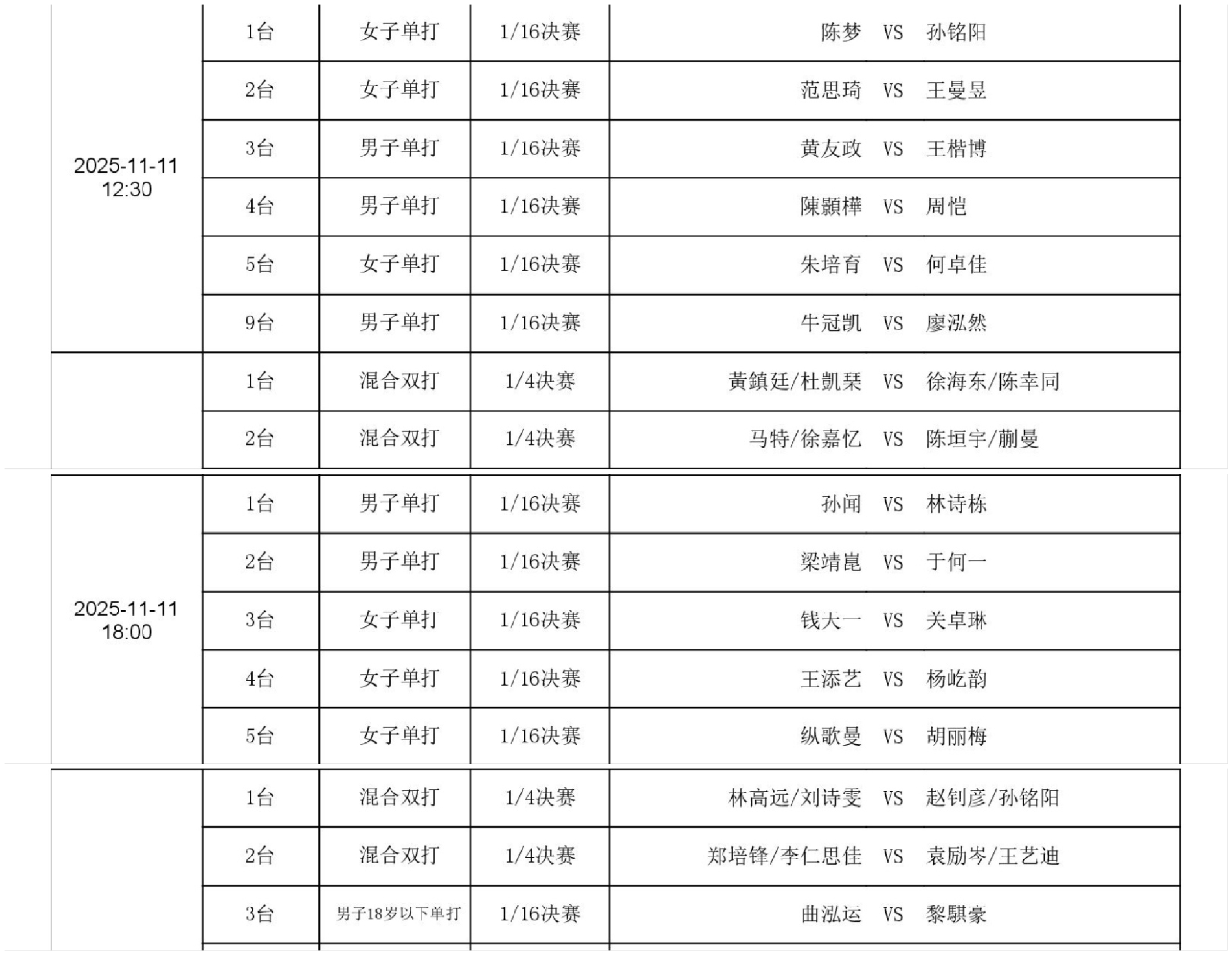 On November 11, 2025, at the National Games, table tennis matches featuring Wang Manyu, Lin Shidong, and Chen Meng will be broadcast live on CCTV-5 and the CCTV app.