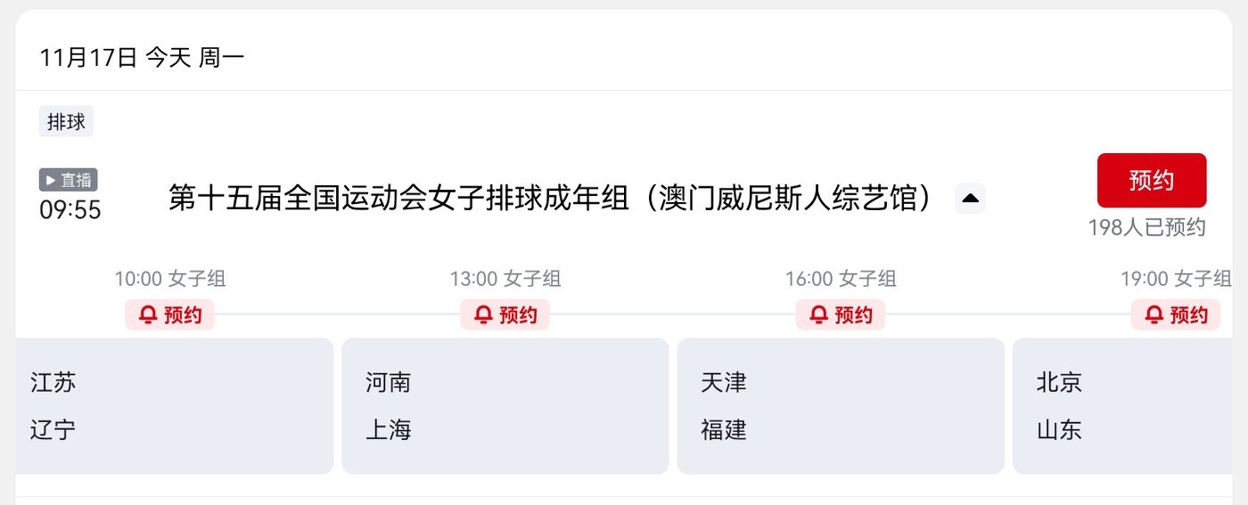 Home>tennisNews> The women's volleyball schedule at the National Games today (11.17) features Henan vs. Shanghai with Zhu Ting playing, live on CCTV-5 and Yangshipin. >