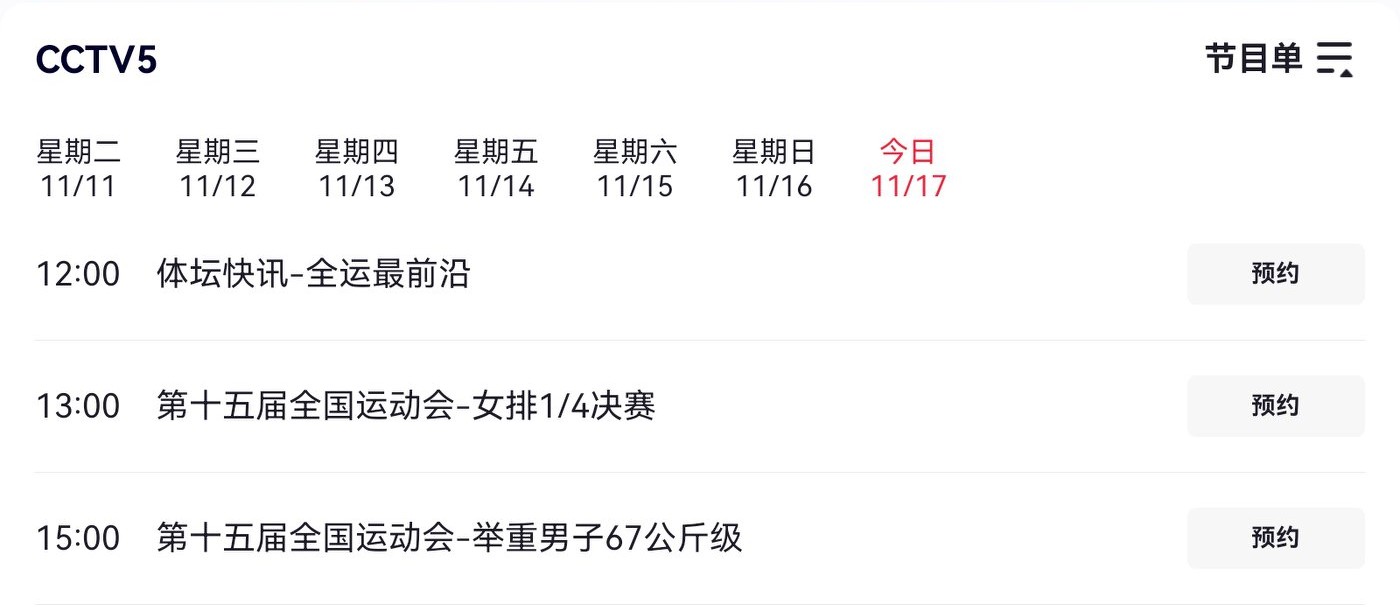 The women's volleyball schedule at the National Games today (11.17) features Henan vs. Shanghai with Zhu Ting playing, live on CCTV-5 and Yangshipin.