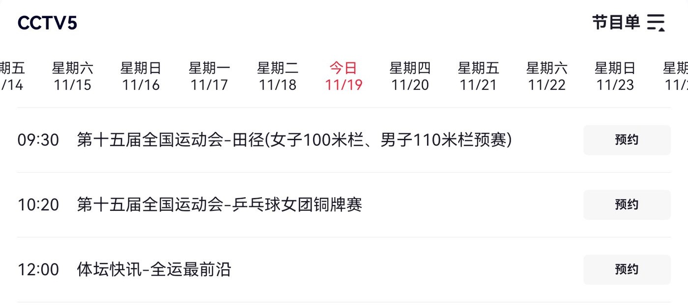 The live broadcast plans for CCTV-5 and the CCTV Video app are detailed in the image below.