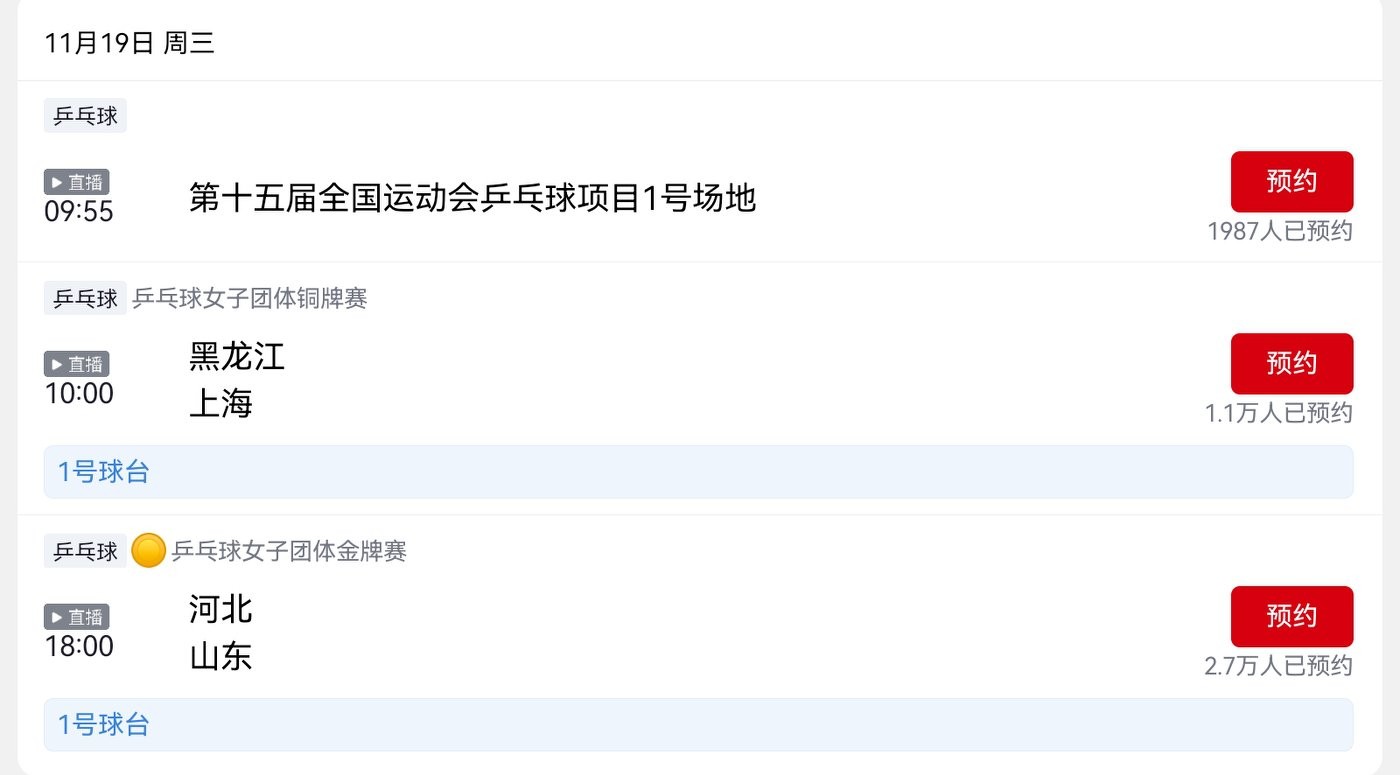 Breaking news: CCTV-5 will broadcast live today (2025.11.19) the women's team table tennis gold and bronze medal matches at the National Games, featuring Sun Yingsha and Chen Meng.
