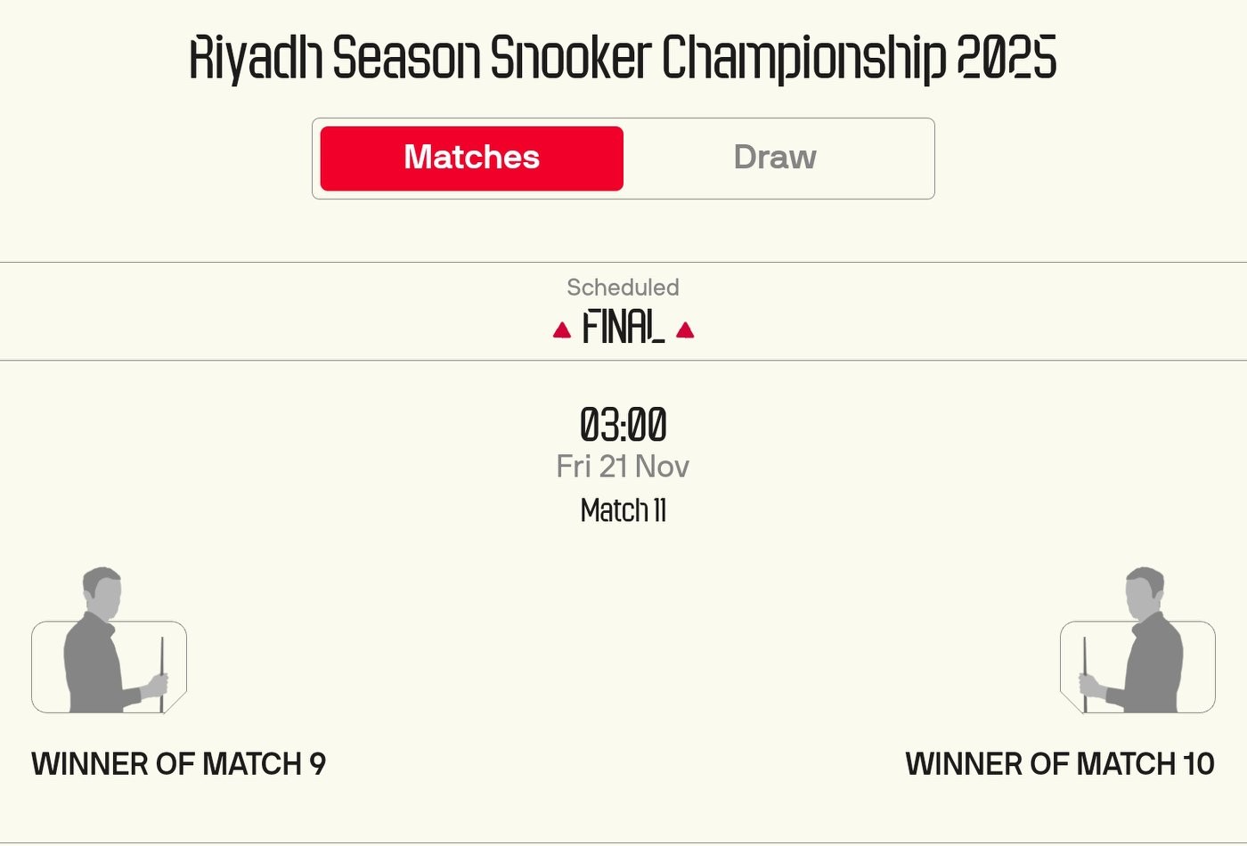 The Snooker Saudi Championship schedule for today (11.21) features Zhao Xintong, Allen, and others competing, with live broadcasts on Migu and Huya.