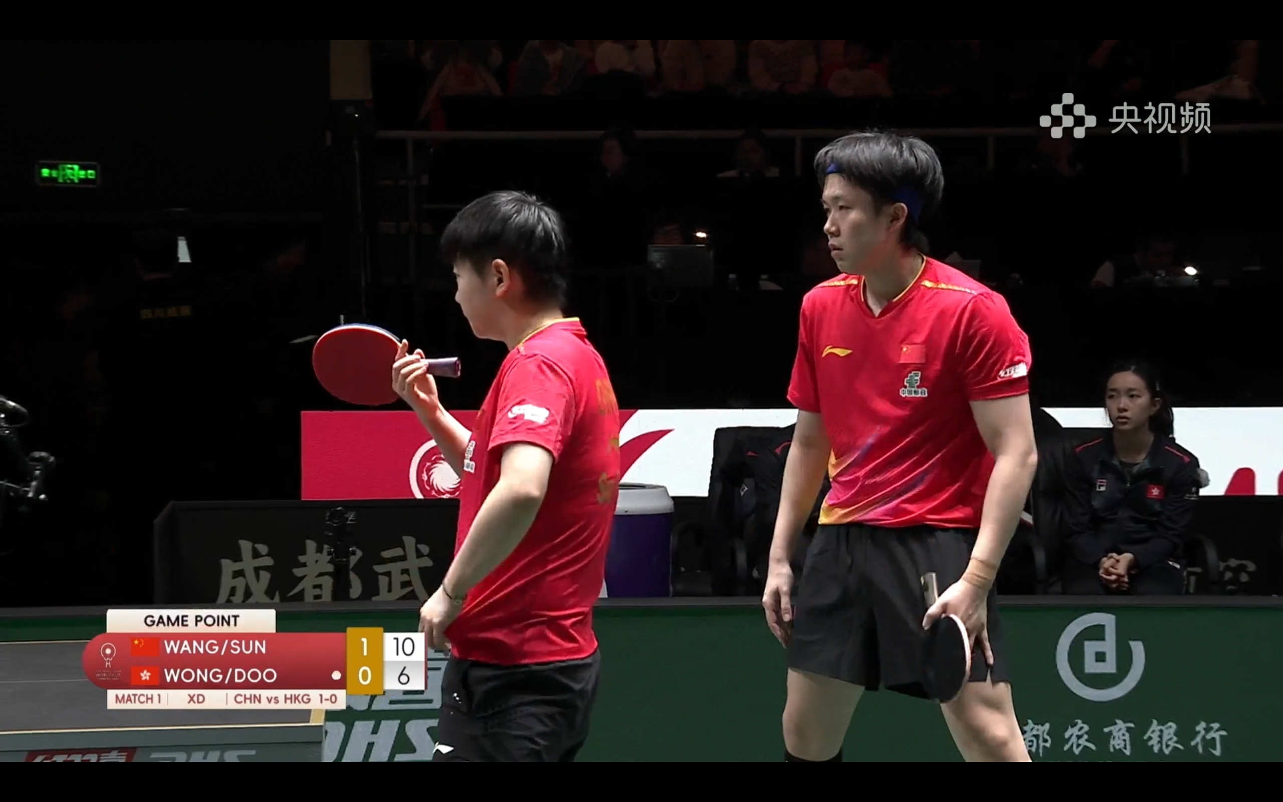 The first stage of the Chengdu Mixed Team World Cup lasts three days, with tomorrow being the final day to complete matches and check the rankings. The top two teams from each group advance to the second stage. This group includes China, Hong Kong, Egypt, and Chile, with China and Hong Kong likely to qualify together.