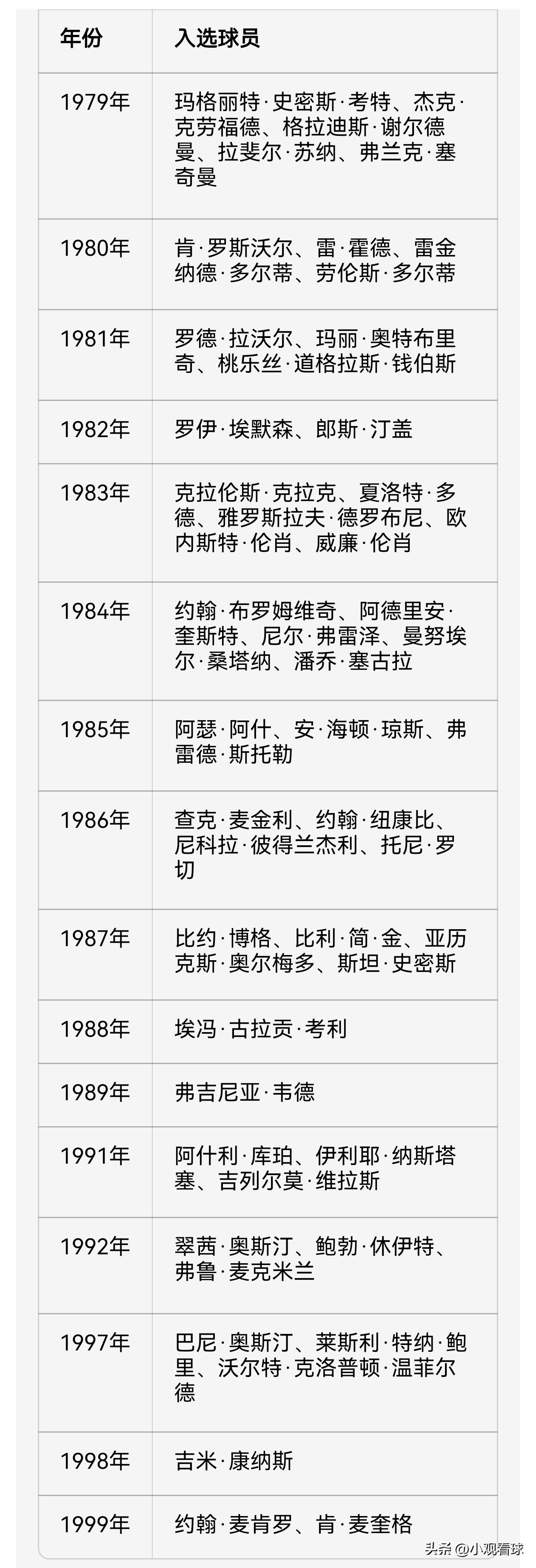 Hall of Fame Inductees from 1979 to 1999