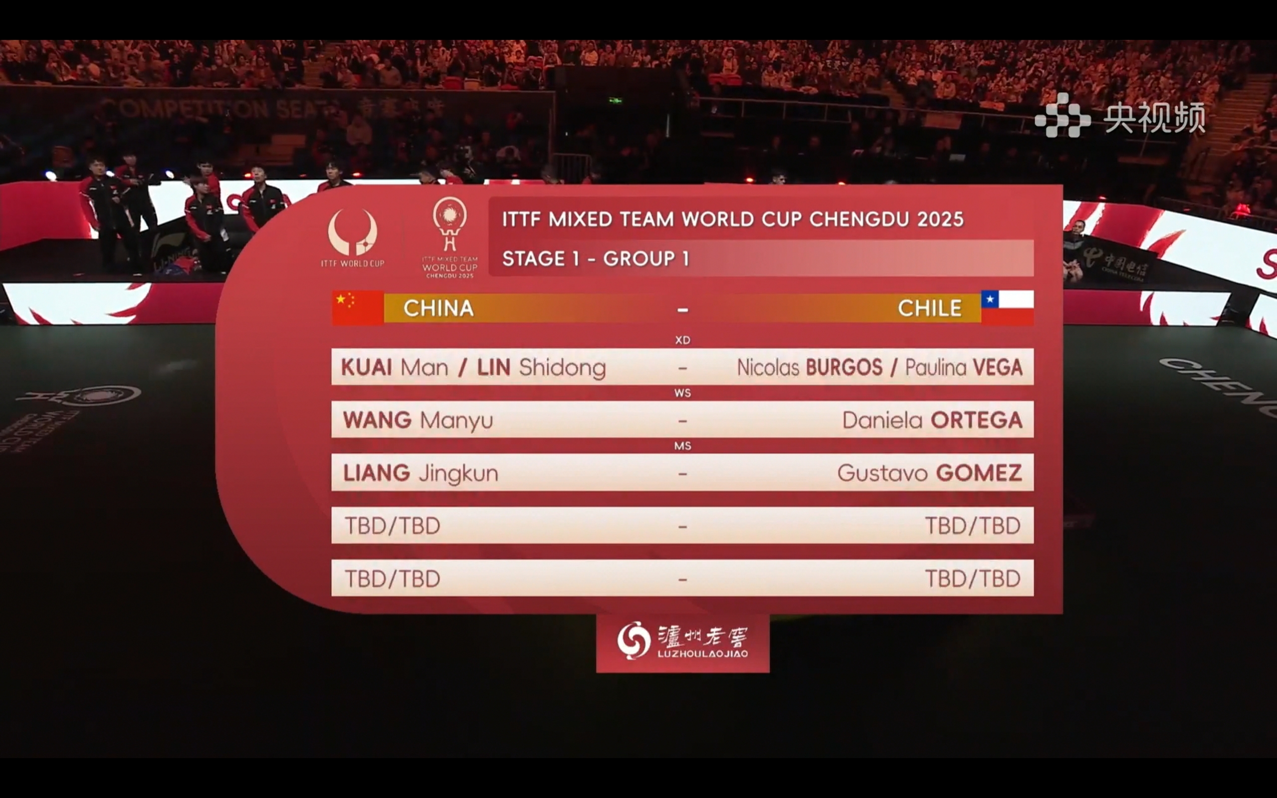 CCTV-5 and Yangshipin are offering free live streaming of the Table Tennis Mixed Team World Cup match between China and Chile.