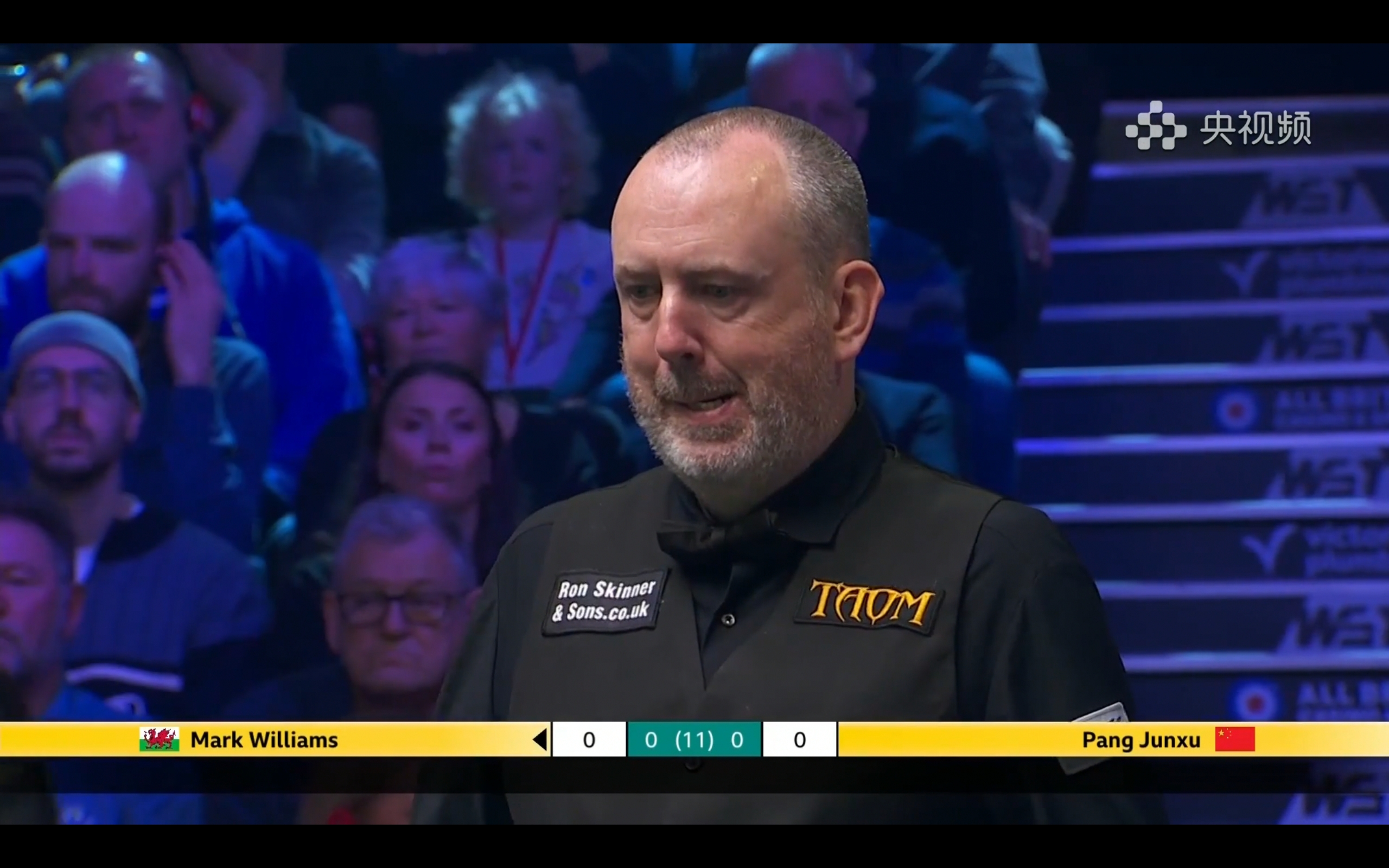 CCTV Video and Migu Video are live streaming the Snooker UK Championship Round of 16 match featuring Pang Junxu versus Mark Williams.