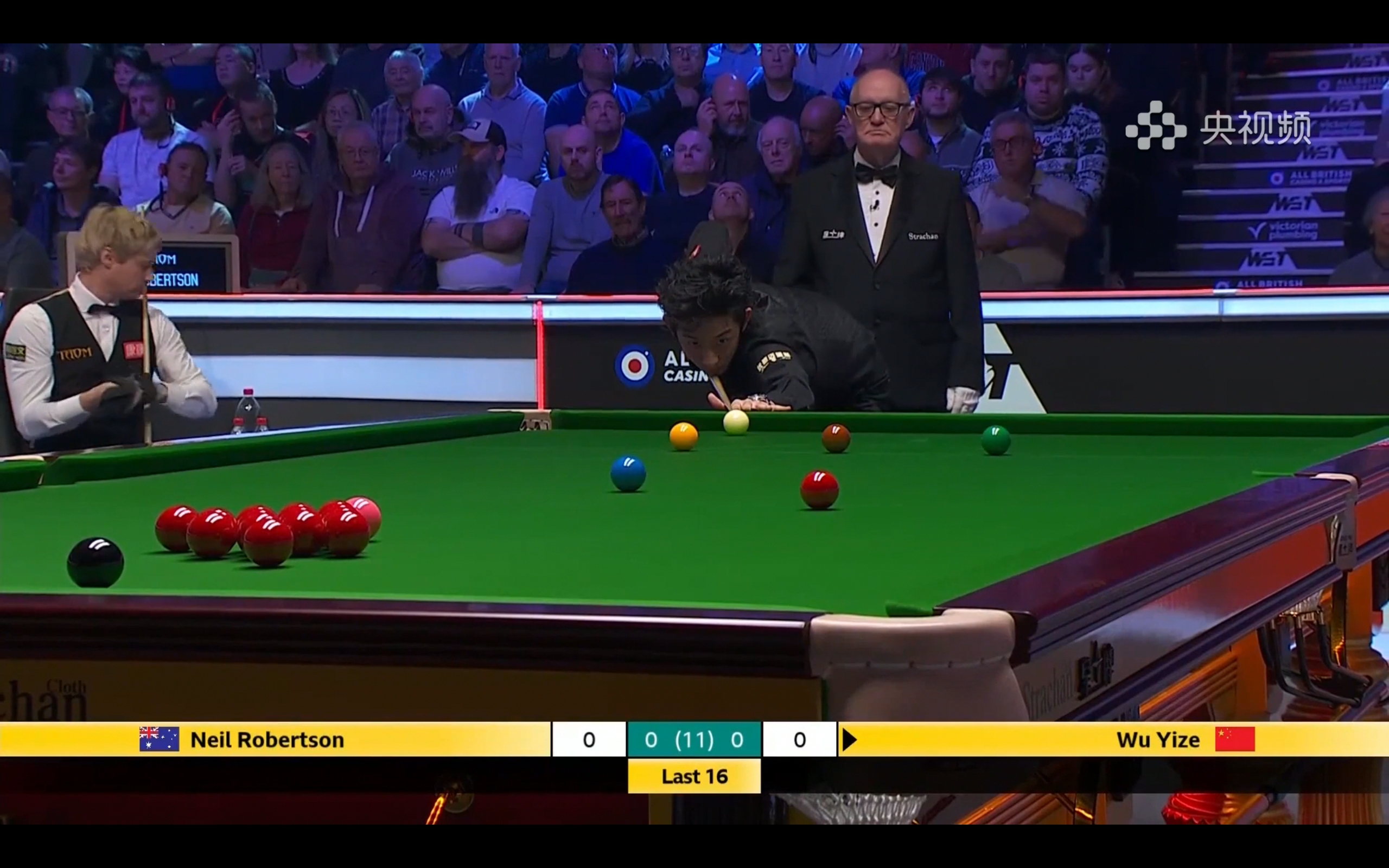 This match follows a best-of-11 frames format, and they are currently playing the opening frame, with Wu Yize and Neil Robertson tied at 0-0.