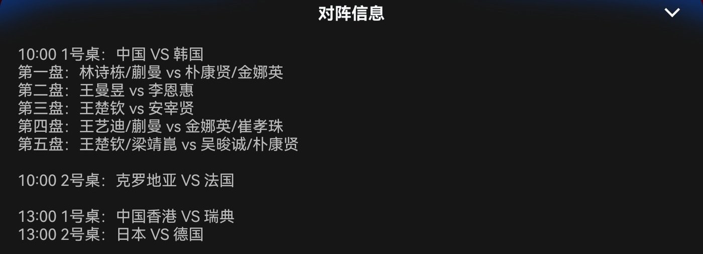 Judging from the lineup details, it seems South Korea has essentially forfeited the match; their main player Shin Yu-bin is not participating. The players on the court, Park Kang-hyun and Choi Hyo-joo, are unfamiliar to me—I wonder if anyone else has heard of them. Of course, our Sun Yingsha is also not playing. If all goes as expected, we should quickly defeat South Korea by 8-1 or 8-2, likely in under 90 minutes. What do you all think?