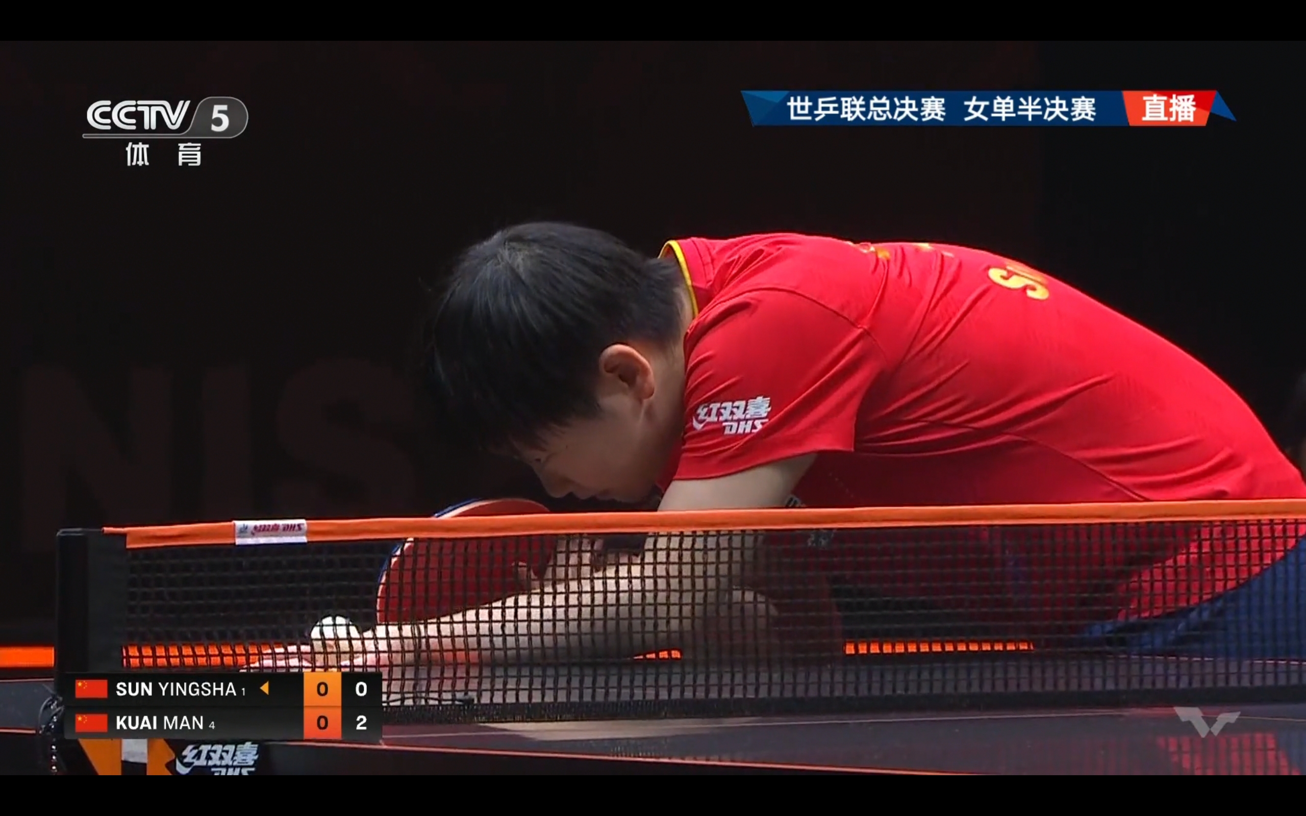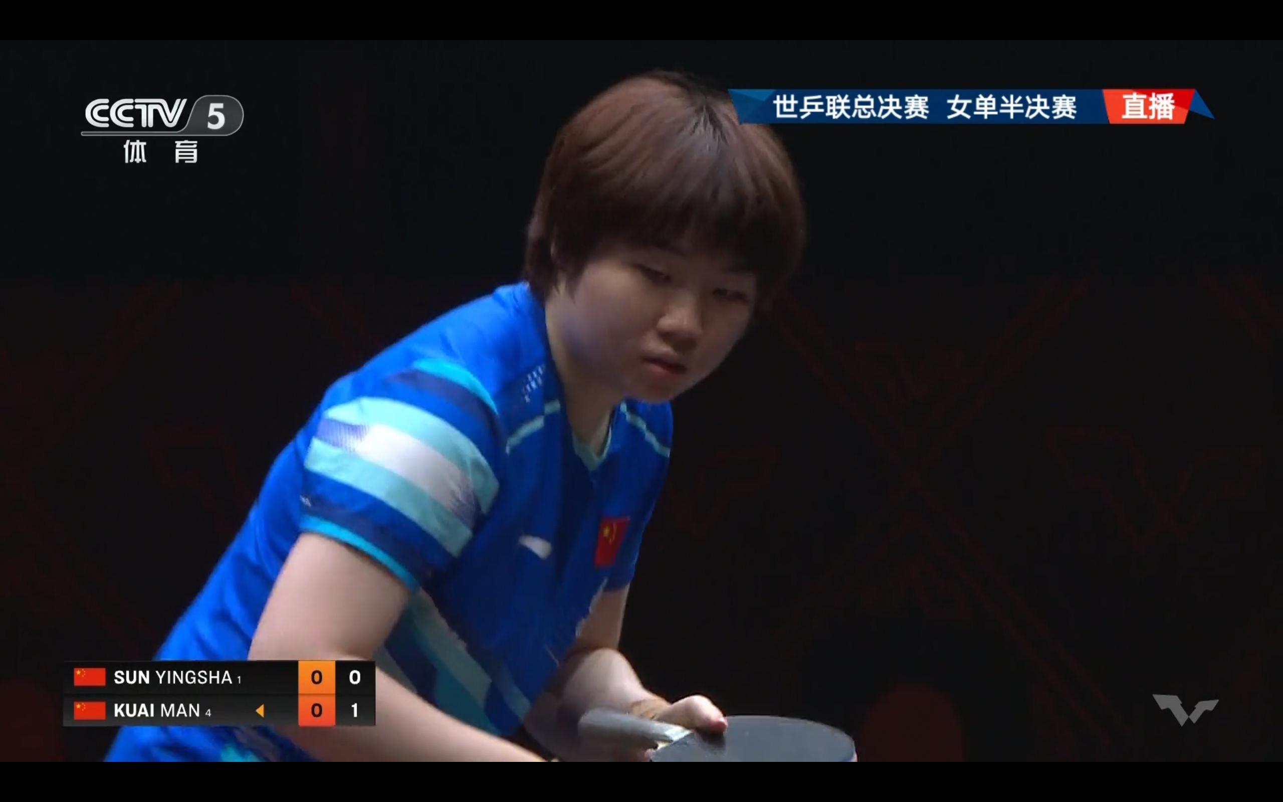 CCTV-5 is live with the WTT Finals Women's Singles Semifinal match between Sun Yingsha and Kuai Man.