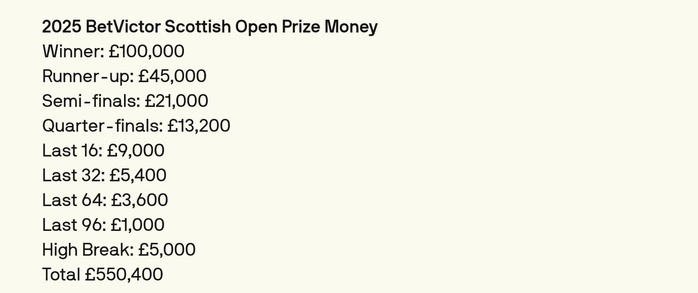 Quarter-finalists receive £13,200 each.