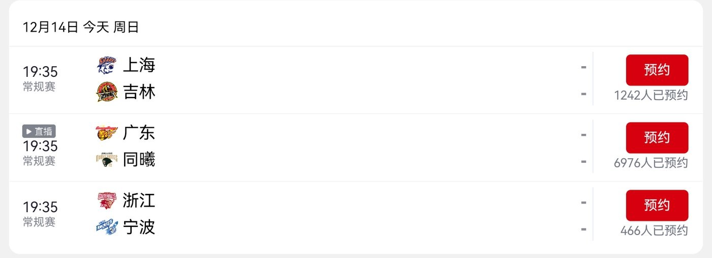 According to the schedule released by the organizing committee, three CBA regular season games are set for today, with the key matchups being Guangdong Dongyangguang versus Nanjing Tianzhilan and Guangdong versus Tongxi.