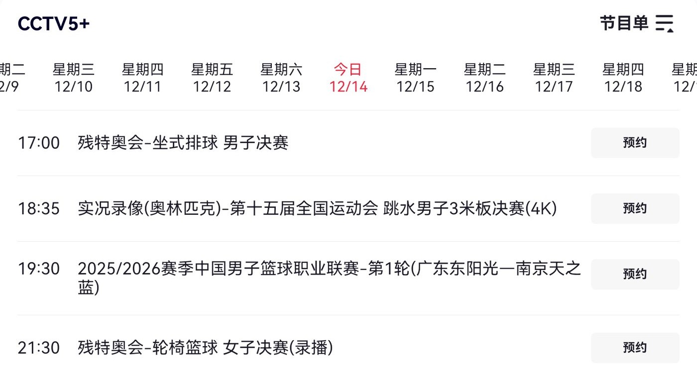 The CBA game today (2025.12.14) is Guangdong Dongyangguang against Nanjing Tianzhilan, live on CCTV-5+.