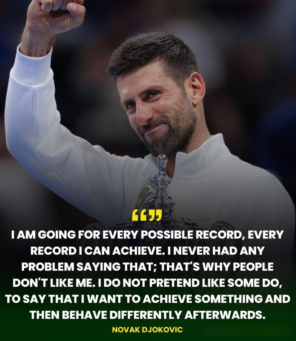 “I want to challenge every possible record, every record I can achieve. I’ve never thought there’s anything wrong with saying that. That’s why some people don’t like me,” Djokovic admitted. He confessed he is never good at pretending, speaking his mind openly, and even if others dislike him for it, he clearly expresses his true thoughts.