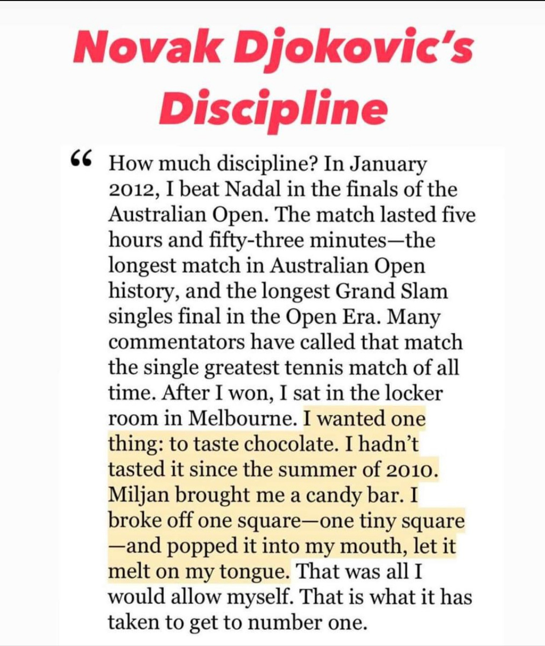 After claiming that historic Australian Open title, Djokovic’s way of celebrating became even more striking than the victory itself. It wasn’t a night of indulgence but a moment of extreme restraint. He rewarded himself with chocolate for the first time since 2010, but the portion was so minimal it was purely symbolic.